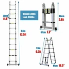 Portable Aluminum Telescopic Ladder Heavy Duty Folding Extension Step Ladders 2.6M/3.2M/3.8M/4.4M/5M/6.2M Aluminium Telescopic Ladder Extension Extendable --High quality foldable telescopic style ladder. --Foldable design, convenient to use and easy to carry around. --The ladder is highly versatile and can be used for many tasks, no matter at home or work. Invaluable around the house and work place. --Easily stored in everywhere when ladder is closed. --Quickly and easily extends rung by rung to the required height. --Safe and compact---- The ladder comes with high quality rubber feet for extra stability and grip and stable locking key between two neighbouring steps to avoid bumping and friction. --Constructed from high quality and polished aluminium. --Lightweight yet durable and compact for easy storage and transportation. --Highly versatile and can be used for many tasks around the home as well as for trade use. --Slight deviation may occur during measurement, please take care and thanks for your understanding 3.2M/10.5FT Telescopic Straight Ladder +Hook (Black): --3.2m (10ft5) foldable telescopic style climb ladder: --Number of Ladder Step: 11 --Step Interval: 30cm --Net Weight: about 8.7kg --Max. Load: 150kg --Approx. Size: 82cm (Folded Height); 3.2m/10ft49 (Unfolded Height) 3.8M/12.5FT Telescopic Straight Ladder +Hook (Black) : --3.8m (12ft46) foldable telescopic style climb ladder: --Number of Ladder Step: 13 --Step Interval: 30cm --Net Weight: about 10.8kg --Max. Load: 150kg --Approx. Size: 88cm (Folded Height); 3.8m/12ft5 (Unfolded Height) 4.4M/14.4FT Telescopic Straight Ladder +Hook (Silver) : Specifications: - Extended Height: 4.4m / 14.4ft - Folded Height: 89cm / 2.9ft - Width: 48cm / 1.57ft - Hook Height: 10cm / 4inch - Number of Ladder Step: 15 - Step Interval: 30cm / 11.8inch - Pedal Width: 4cm / 1.6inch - Net Weight: 12kg / 26lb - Max Load: 150kg / 330lb - Material: Premium Aluminum Alloy 5M Telescopic Straight Ladder +Hook (Black/Silver) : --5m (16ft4) foldable telescopic style climb ladder: --Number of Ladder Step: 13 --Step Interval: 40cm --Net Weight: about 12.3kg --Max. Load: 150kg --Approx. Size: 98cm (Folded Height); 5m/16ft4 (Unfolded Height) 6.2M Telescopic Straight Ladder +Hook (Black/Silver) : --6.2m (16ft4) foldable telescopic style climb ladder --Width: 49m / 1.6ft --Number of pedals: 15 steps --Step spacing: 39.5cm --Weight: 16.3kg / 36lbs --Load: 150kg / 330lbs -Approx. Size: 109cm (Folded Height); 6.2m/20ft34 (Unfolded Height) 2.6M/8.5FT Telescopic Straight Ladder (NO HOOK) : --2.6m (8ft5) foldable telescopic style climb ladder: --Number of Ladder Step: 9 --Step Interval: 30cm - -Net Weight: about 6.85kg --Max. Load: 100kg --Approx. Size: 72cm (Folded Height); 2.6m/8ft5 (Unfolded Height) 3.2M/10.5FT Telescopic Straight Ladder (NO HOOK) : --3.2m (10ft5) foldable telescopic style climb ladder: --Number of Ladder Step: 11 --Step Interval: 30cm --Net Weight: about 8.7kg --Max. Load: 100kg --Approx. Size: 82cm (Folded Height); 3.8m/12ft5 (Unfolded Height) 3.8M/12.5FT Telescopic Straight Ladder (NO HOOK) : --3.8m (12ft5) foldable telescopic style climb ladder: --Number of Ladder Step: 12 --Step Interval: 30cm --Net Weight: about 10.8kg --Max. Load: 100kg --Approx. Size: 85cm (Folded Height); 3.8m/12ft5 (Unfolded Height) 5M/16.5FT Telescopic Straight Ladd er (NO HOOK) : --5m (16ft4) foldable telescopic style climb ladder: --Number of Ladder Step: 13 --Step Interval: 40cm --Net Weight: about 12.3kg --Max. Load: 100kg --Approx. Size: 94cm (Folded Height); 5m/16ft4 (Unfolded Height) 3.8M/12.5FT (1.9M+1.9M)/(6.2FT+6.2FT) 'A' Folding Telescopic Ladder (NO HOOK) : --3.8m (1.9m+1.9m) foldable A-shaped telescopic style climb ladder: --With a safe locking mechanism -- Number of Ladder Step: 6*2 --Net Weight: about 13.6kg --Max. Load: 100kg --Approx. Size: 81cm (Folded Height); 3.8m/12ft5 (Unfolded Height) --A-shape Length: 190cm + 190cm 5M /16.5FT (2.5M+2.5M)/(8.2FT+8.2FT) 'A' Folding Telescopic Ladder (NO HOOK) : --5.0m (2.5m+2.5m) foldable A-shaped telescopic style climb ladder: --With a safe locking mechanism --Number of Ladder Step: 8*2 --Closed Length: 86cm --Vertical Length:5m --Net Weight: about 17.8kg --A-shape Length: 250cm + 250cm --Step Interval: 30cm --Max Load 100kg Only 'I'/'V' Ladder Stand, NO Ladder If choose “ Ladder Stand ”ONLY, not including Telescopic Ladder 'I'/'V' -shaped Ladder Stand-Off Special Features: Helps ladder stability and the 'I'/'V' ensures you can span down pipes Allows you to work more easily on windows, sills, soffits and guttering Designed especially to fit corner points Heat treated for maximum strength and very easy to attach to your ladder Payment Delivery details Feedback Contact us Payment 1.We accept PayPal only! 2.Please keep the consistency of the address from Paypal and eBay. 3.Payment must be received within 3 days since you won the item, or eBay will launch Unpaid Reminder Against you. Delivery details Sincerely thank you for choosing us, we suggest you reading our shipping terms and conditions. 1.All items are shipped within 1-2 business days after we confirm your payment and your shipping address. 2.We only ship our items to the areas that our logistics provider covers. 3.To ensure you receive item safely, please offer the concrete and complete shipping address 4.If you are in Puerto Rico,Hawaii,Alaska,APO/FPO, US Protectorates, please contact us via eBay message to discuss the shipping. 5.Please keep the consistency of the address from Paypal and eBay. 6.Sometimes your order may be impacted by extreme bad weather, strikes or other unexpected events. 7.If there are any problems with your order, including late delivery or being lost, please do not hesitate to contact us. We are happy to offer solutions to your inquiries. Feedback If you are satisfied, we sincerely hope that you can leave us a positive feedback and 5-star Detailed Seller Ratings, which are of vital importance to the growth of our company. Besides, PLEAS