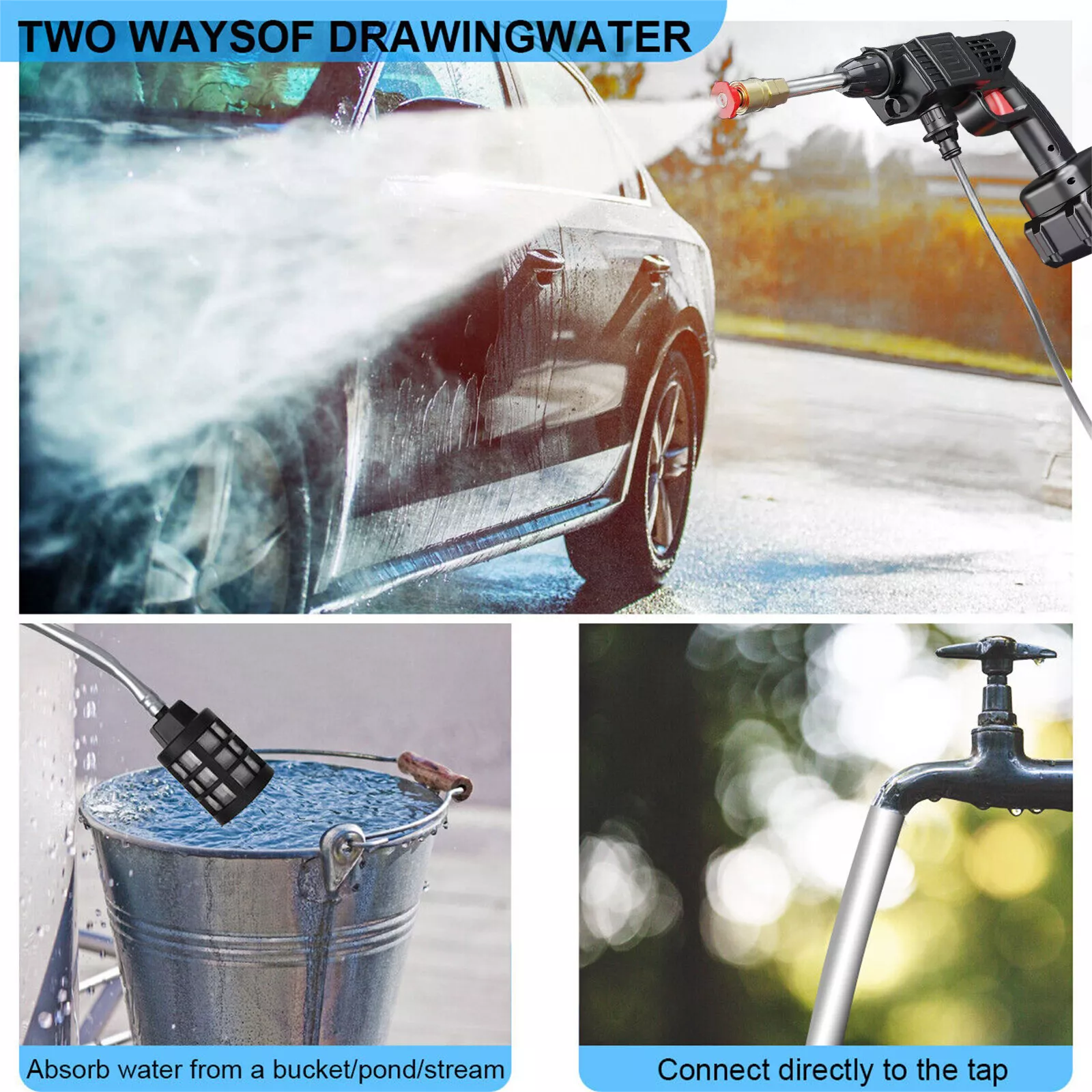 Portable Cordless Electric High Pressure Water Spray Car Gun Washer Cleaner Yard Features: 【 Cordless Pressure Washer Battery Powered 】 Battery powered pressure washer comes with two rechargeable batteries, each with a capacity of 6000 mAh. When fully charged, it can run for 15-25 minutes, which is longer than most other products. This means you won't have to worry about running out of battery while using it. 【Powerful Motor】 Portable pressure washer gun adopts a pure copper motor that can provide a maximum water pressure of 377 PSI. It has high pressure output while consuming less energy, longer service life than traditional motors,ideal for applications including cars, yards, windows, floors and more. 【Multi-function Nozzle&Connection Mode】 Equipped with 3 nozzles that can be used in 0 °water column mode, 40 °sector mode and foam shower mode. 。Moreover, it comes with 3 watering systems that can be connected to a hose, foam bottle, or cola bottle, catering to your various application needs in different scenarios. 【Draw Water From Anywhere】 Portable power washer is equipped with 16.5ft hose, which allows users to clean from further away. The filter equipped can effectively filter impurities, particles, and sludge from the water source, which can better protect our cleaning gun. 【Lightweight and Compact Pressure Washer】 Say goodbye to cumbersome machines and hello to the lightweight compact electric pressure washer. Powered by a 21V 2.0Ah rechargeable battery, our electric high pressure washer gives you 15-25 minutes of uninterrupted cleaning time. 【Easy to Install and Use】 Assembling the cordless pressure washer battery powered is extremely easy, with a simply quick installation process for the water inlet and small nozzle, and a trigger that is easy to pull, everyone can use it with ease.With its extension pole that can be easily aligned with the interface and tightened with a simple rotation. Say goodbye to difficult cleaning tasks and hello to the cordless power cleaner, the portable water pressure washer for all your cleaning needs. 【Multi Applications】 This battery operated pressure washer is not only can be used to clean the vehicles, but also can effectively clean the garden furnitures, walls, fences, floors, baths, pools, doors, pathways and watering plants and corners that are difficult to clean manually. A car wash pressure washer gun is also the perfect gift for yourself, your friends, and your family. Specification: Type: Water Pressure Washer Color: Black Power Source: Battery Battery voltage24VH 6000mAh *2 Power: 260W Rated pressure: 26bar Battery capacity: 6000mah for 1 Battery Number of batteries: 2 Water pressure: 26bar Water hose length: 5m/16.5ft Shooting range: 10m/33ft Material: ABS Plastic+Metal Water hose Material:PVC Input Voltage:AC110V-240V 50/60Hz Output:DC21V 2A Charging Time:2.5h for 1 battery Working Time:15-25 minutes for 1 battery Package Content: 1X High Pressure Water Spray Gun 2X 6000Mah Rechargeable lithium batteries 1x Charger 1X connecting rod 1 x 0° Sprinkler 1 x 40° Sprinkler 1 x 200ml Foam pot 1 x inlet pipe connector 1*Coke Bottle Interface 1X soft water hose 1X filter jug 1*Instruction Payment Delivery details Terms of sales Feedback Contact us Payment Immediate payment is required. Shipping will be arranged within 1 business day once payment is cleared. To uphold a shipping speed, your order will be processed almost immediately. If you change your mind after your payment is confirmed, we will do our best to cancel the order, however, we CANNOT guarantee the cancellation. Delivery details FREE SAME BUSINESS DAY MONDAY- FRIDAY SHIPPING FROM USA. No shipping on Weekends or US Public Holidays. No responsibility for any custom duty. We will ship your order to your Ebay Verified address provided. Please verify your address and make sure that it is your current address before making your payment. Any address change requests after your payment CANNOT be guaranteed. Shipping information will be updated when available. All of our products can be shipped internationally. To confirm the shipping rates to your country please refer to eBay's Shipping Tab above. Any brokerage, customs, and duty fees associated with international shipments are the customer's responsibility and are not included in our shipping fee. A phone number is required for the customs documents. Failure to provide one will result in delays. We do not include an invoice or any advertising materials with our shipments. Terms of sales We stand behind our items and offer 60 days warranty. All items are in new and working condition unless specified otherwise elsewhere in the description. All Returns - defective or otherwise - MUST BE PREAUTHORIZED to guarantee refund or exchange. Please contact us to get an authorization and return address. Buyer agrees to pay for the cost of re-shipment for undeliverable or wrong addresses. Buyer is responsible for Return Postage if return/replacement is not a result of our mistake such as wrong item. Replacement or Refund will be made upon receipt of the returned item. Please include tracking number so we can process ASAP. If you do not wish to wait for a replacement, please repurchase the item. Feedback We strive to provide the best products and services. Your positive feedback 5 stars DSR help us do better. If anything about your transaction did not meet expectations, please CONTACT US and give us the opportunity to make things right. We are always here to help. Contact us Please do not hesitate to CONTACT US . You can message 24/7 on eBay for all questions and inquiries. We will get back to you within one business days at the latest from Monday- Friday.