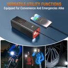【160 PSI High-Pressure Performance】 Powered by a 25-cylinder high-pressure system, this cordless tire inflator portable air compressor can quickly inflate car tires, bike tires, and motorcycle tires with ease. It’s ideal for emergency situations, e with an emergency LED light, it's perfect for night-time use and emergencies 【Preset Pressure & Auto Shutoff】Easily preset your desired air pressure values, and the portable car tire inflator will automatically stop once the preset level is reached. This feature ensures safe and precise inflation, making it a reliable air pump for car tires, bike tires, and more, without the risk of over-inflation 【Smart Inflation Modes & Multi-Functionality】This auto tire inflator comes with 4 preset inflation modes for cars, motorcycles, bikes, and balls. It also serves as a power bank with a Type-C output for charging devices. With its compact design and included storage bag, it's ideal for drivers looking for a versatile, multi-functional air compressor 【Rechargeable Battery for On-the-Go】Featuring a built-in rechargeable battery, this air compressor portable is lightweight and compact, anytime. Whether you're inflating a bicycle tire, car tire, or electric bike pump, the portable air pump provides reliable power with no need for an outlet. Ideal for travel or daily use 【Service Support】It is a rechargeable tire inflator, which includes a storage bag, air hose, ball needle adapter, Presta valve adapter, Type-C and Type-C cable, and user manual. We also provide you with a 12 month support, if you have any questions or hesitations, please let us know and we will solve it for you within 24 hours