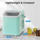 FAST ICE MAKING: The ice maker can make 9 bullet-shaped ice cubes in just 6 minutes. Fill 1.5L of water into the water tank, maximum ice capacity can reach 26.5 pounds in 24 hours. Say goodbye to long waiting times and enjoy a constant supply of ice whenever you need it. It has a transparent window, so you can watch the ice being made. TWO SIZES OF ICE CUBES: You can make two different sizes of ice cubes with this ice machine maker. Small ice cubes are great for keeping seafood or beer fresh and cool for a long time. Large cubes are better for making iced coffee or cold drinks for a quick cooling effect. Smooth bullet ice that won't hurt your hands or mouth during use. SELF-CLEANING FUNCTION: The countertop ice machine has a self-cleaning function that can be activated by pressing the on/off button for 5 seconds. This will ensure that you can enjoy clean and healthy ice in addition to allowing you to clean it quickly and easily. This ice cube maker comes with an ice scoop and a removable ice basket in the package. PORTABLE ICE MAKER: This counter top ice machine maker weighs 15.4 pounds and is designed with a convenient carry handle. The small ice maker measures 8.8*11.6*12.5 inches. You can place the mini portable ice maker countertop anywhere, perfect for the kitchen, office, bar, camping, RV, or parties. SMART & SIMPLE OPERATION: The control panel is very easy to operate. Enjoy fresh ice with 3 easy steps! When the water is insufficient or the ice basket is full, the indicator light will turn on. When making ice cubes, the noise is lower than 40dB, similar to a working refrigerator. 1 Self-cleaning Function 2 Two Sizes of lce Cube 3 Smart Ice Maker 4 Low Noise 1 HOME KITCHEN 2 CAMPING 3 POOL PARTY 4 OFFICE What is the after-sales support on this? The ice maker provides 1-Year after-sales support. Is it noisy in daily use? The countertop ice maker operates at about 40dB, which is equivalent to the noise of a common refrigerator, so it wil not disturb you during your daily life. Does the ice machine have a freezer function? No, ice cubes cannot be kept in the machine for a long time. lf you want to keep the ice cubes from melting, you will need to pack them in the ice bag and move them to your freezer. What do you need to pay attention to when you use the machine for the first time? Before first use, you need to clean the ice maker machine and keep it in an upright position for 24 hours. My ice cubes are sticking together, what should I do? How to make ice cubes melt more slowly? Stop the ice maker and restart it after the ice melts. Another way is to change the water. The recommended water temperature is 40°F - 90°F. Equipment be used within an ambient temperature of 10°C-30°C. Using water with a temperature of 4°C-25°C