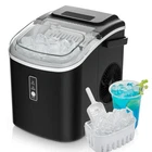 Product details Introducing the EUHOMY tabletop ice maker—your ultimate solution for instant, fresh ice! This high-efficiency model produces up to 26.5 lbs of bullet-shaped ice cubes in just 24 hours. Its easy one-click operation and transparent lid design make it user-friendly and stylish. The low noise level (under 40dB) ensures quiet operation, perfect for any setting. Whether at home, in the office, or at a party, EUHOMY’s ice maker brings convenience and charm. The upgraded countertop version is even faster, producing 9 ice cubes in just 6 minutes and up to 26.5 lbs in a day. It features a 1.5-liter water tank and small or large cube options. Enjoy a steady supply of ice with EUHOMY—wherever you need it! Specification Voltage/Frequency: 120V/60Hz Ice shape: Nugget Ice capacity: 26.5lbs/24h Water tank: 1.2L(0.31gal) Ice basket capacity: 1.1lbs Color: Black Material: Plastic Product size:11.65*8.15*10.98in(D×W×H) Net weight: 13lbs Refrigerant/Refrigerant amount: R600a/0.74 Oz(21g) Package included: 1x Ice maker 1x Ice Scoop 1x Ice Basket 1x User manual Lightning-Fast Ice Making : Our Euhomy ice maker only takes 6 minutes to make 9 bullet-shaped ice cubes. With a 1.2L water tank and powerful compressor, the portable ice maker easily makes maximum ice capacity to 26lbs ice per day and holds up to 1.3lbs ice at a time. Portable design : Our ice maker comes with a sturdy handle, weighs only 13.38lbs and with compact size. Those features make ice maker easy to carry and perform well on any occasions like Kitchen/Home/Camping/RV. Effortless Maintenance : With a easily control panel that simplifies operation to merely two steps-filling with water and pressing the"Ice/Clean" button-our ice maker. Our countertop ice maker includes an automatic cleaning function, simplifying upkeep and freeing you from manual cleaning tasks. Quiet Operation: Experience the convenience of a compact ice maker with a whisper-quiet operation. With large see-through window visualized design, Our ice maker allowing monitor the ice production process. Equipped with a 170w upgraded compressor that 4kWh per day energy consumption to save your electricity bills. Healthy Material : Providing healthy and safe food to customers is an important issue. Euhomy ice maker is made of food grade material, which can effectively take care of your health. The newly designed countertop ice maker produce the most popular bullet-shaped smooth ice cubes, which won't stick together easily or hurt your hands or mouth even are excellent for cold drinks or iced coffee