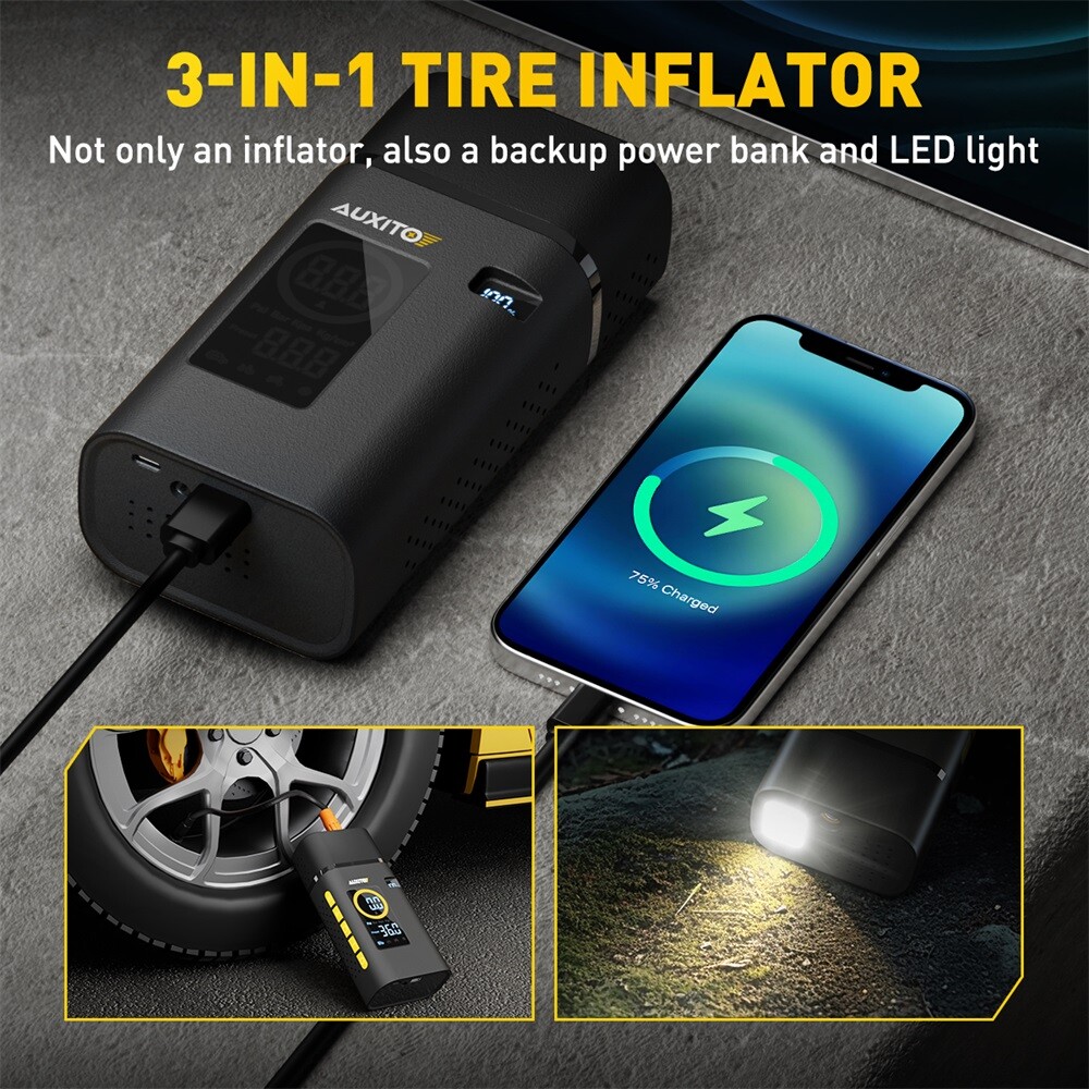 This portable air compressor is a game-changer! Super fast and easy to use with multiple preset modes for bikes, cars, and more. Love the custom mode for precise pressure settings. The LED light is super handy for nighttime emergencies, and the battery life is solid. Compact, powerful, and way quieter than expected—perfect for road trips or quick tire fixes at home. A must-have for any vehicle owner!