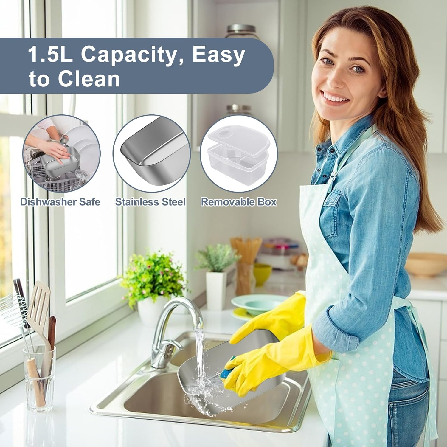 Store New Arrivals Add to Favorite View Feedback Contact Electric Lunch Box Food Heater, Electric Heating Lunch Boxes Lunch for Adults/Men/Truck/Car/Work, 80W 1.5L Removable 304 Stainless Steel Container, 110V/12V/24V, with Fork & Spoon Description Item model number DFH-001 Closure Type Snap Style Eclectic Number of Compartments 1 Capacity 1.5 Liters Number of Items 1 Unit Count 1 Count Color Butterfly Blue Item Form Box Material Polypropylene Shape Rectangular Item Weight 2.14 pounds Theme Car, Construction Site, Gift, Home, Lunch Box, Office, Truck Age Range (Description) Adult Included Components Lunch Box Special Feature function(f) {var _np=(window.P._namespace("DetailPageProductOverviewTemplatesJava"));if(_np.guardFatal){_np.guardFatal(f)(_np);}else{f(_np);}}(function(P) { P.when('A').execute(function(A){ A.on('a:truncate:po-attribute-truncate-4:updated', function(data) { var isTruncated = !data.truncateInstance.getIfTextFits(); var seeMoreElement = document.getElementById('po-attribute-see-more-id-4'); if(seeMoreElement) { seeMoreElement.style.display = isTruncated ? '' : 'none'; } }) }); })); 110V for Work/Home, 12V/24V for Cars/Trucks, 80W Heat up within 20-30 Minutes, A Gift for People Who Are Trying to Eat Healthier on the Go, Comes with a Fork and a Spoon See more Product Dimensions 9.5"L x 6.7"W x 5.5"H Product Care Instructions Hand Wash Only, Microwave Safe Number of Pieces 1 Enjoy Warm & Healthy Meals --- This food warmer lunch box makes you enjoy warm and healthier home-cooked meals, with no microwave need. Get it plugged 20-30 Mins before mealtime for self-heating, you will have a hot lunch and don’t have to pay for fast food. Tip: recommend adding some stock or water to the food for heating up faster and more evenly. Do not add water to the heating base! (Do not add water to the heating base!) 2 IN 1 Car & Home Use --- Electric lunchboxes for adults contains two different plugs: one for Work/Home (110V), one for Car/Truck (12v/24v). People who on the road for lunch or without access to a microwave, such as truck/Uber driver/office worker can enjoy hot homemade food in the car/office. Improved Sealing Lid --- Leak-proof seal gasket is installed on the lid for a better seal to prevent liquid food from spilling out. For closing the cover properly and smoother, please lock the short snaps first and then lock the long snaps. The liquid may leak out from the steam port on the lid, so please don't turn the lunchbox upside down. Safe Material & Easy To Clean --- Portable heated lunchbox made of premium PP plastic and 304 stainless steel, which is safe and durable. Contains a 1.5L removable stainless steel container and a 0.45L plastic box for storage, they are dishwasher safe. Warm Tips: No cleaning the heating base with water, No add water to the heating base to avoid short circuits. Lifetime Satisfaction Guarantee --- We hope the lunch box is worth having and make your life better. Please contact us if there is any problem with it heating up. Even if missed the return window, we will send you a brand new lunchbox or give you a satisfactory solution. Product Description Vabaso electric lunch box contains 2 plugs: 12V/24V power cord for cars/trucks use, 110V for home/office use. Equipped with 80W power, heating faster, about 25-30 mins to warm up meals. This portable electric lunch box will bring convenience to your life, allowing you to enjoy a clean, hygienic and delicious hot lunch. Suitable for company office employees, car/ truck drivers/ construction workers/ teachers, and so on. Package Includes: 1 x Electric Lunch Box 1 x Lunch Box Bag 1 x Cutlery (Spoon & Fork) 1 x Vehicle Powering Cable(12V/24V) 1 x Socket Powering Cable(110V) Portable: The stylish appearance and portable handle allow you to carry food with you. Gift: A perfect gift for your husband, boyfriend, father, and friend or yourself. Vabaso 80W Electric Lunch Box: Supports: 12V Car Use + 24V Truck Use+ 110V Home/Office Use. Even if you are busy at work, this electric heated lunch box can also provide you with a warm lunch. 12V/24V adapter power cord allowing you to heat up food while driving and enjoy hot meals during the journey. Material: Food grade PP material & 304 stainless steel, safe and durable. Removable: 1.5L large capacity stainless steel container is removable, very easy to clean. 1. Don't place the lunch box in the freezer or microwave. 2. Make sure the steam outlet is opened before heating. 3. Don't immerse the heating base in water for cleaning. 4. Please pull out the power cord before eating. Not Microwave Need This portable food heating lunch box make your life better. You don’t have to line up and use the microwave to heat up the food. People who work outdoors can't use a microwave, such as car/truck drivers, construction workers, they can heat and enjoy their warm lunch anywhere and anytime now. 25-30 Mins Heating Using PTC original constant temperature heating, low-consumption heat cycle to keep food at a suitable temperature and keep the moisture of the food. It can be heated to about 70°C in 30 minutes. Portable for Car & Home Use This portable food heating lunch box contains 2 plugs: 12V/24V car/truck power cord, 110V for home/office use. Whether you are on the go or running your busy work in the office, Vabaso electirc lunch box make you enjoy hot meals. Leakproof and Convenient Handle Vabaso electric lunch box is designed with a silicone sealing ring, the buckle fits tightly with the built-in sealing ring to effectively prevent food from leaking out. And equipped with an embedded handle, convenient to carry. Easy to Clean 1.5L large capacity 304 stainless steel removable container which is removable for easy cleaning, and dishwasher safe. Tips: Please don't wash the lunch box as a whole into the water. Portable Insulated Lunch Bag This lunch bag is lightweight and foldable, Sturdy and durable, easy to carry. Insulated aluminum foil makes the food fresh for hours, it's non-toxic 