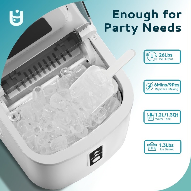 20 AMP Power Strip Surge Protector Heavy Duty 8 Outlets 12 Gauge Industrial New 57.64 USD 61.98 USD Free shipping 7% off Exercise Puzzle Mat 3/4-in, Grey, 24 Sq Ft - 6 Tiles Gym Floor Mats Exercise Mat 45.33 USD 48.74 USD Free shipping 7% off Pond Flakes Fish Food Complete Nutrition Small Goldfish Koi Cleaner Water 2.2lb 24.4 USD 26.24 USD Free shipping 7% off Floating Koi Fish Food 10 LB Premium Pond Feed All Seasons Nutritional Pellets 29.0 USD 31.18 USD Free shipping 7% off Antimicrobial Soft Cushioned Toilet Seat Easy Install Foam Core Durable Design 27.63 USD 29.71 USD Free shipping 7% off Disposable Paper Plates 10 inch Soak Proof 150 Count Multicolor Bulk Dining New 14.42 USD 15.5 USD Free shipping 7% off 48-in Peel & Stick Above Ground Pool Cove Prevent Excessive Stretching & Wearing 42.93 USD 46.16 USD Free shipping 7% off 7.5ft Market Umbrella Outdoor Patio Umbrella Crank Lift No Tilt Steel Frame New 24.6 USD 26.45 USD Free shipping 7% off Egg Layer Crumble 40lb High Calcium Protein Poultry Feed Chickens New 22.89 USD 24.61 USD Free shipping 7% off Adjustable Portable Batting Tee Baseball Softball T-Ball Training Equipment New 25.9 USD 27.85 USD Free shipping 7% off 4-in-1 Microwave Egg Cooker BPA Free Plastic Eggs Sandwich Patty Household New 9.98 USD 10.73 USD Free shipping 7% off 8 Qt Insulated Bait Bucket W/ Aerator Ice Fishing Freshwater Saltwater New 28.78 USD 30.95 USD Free shipping 7% off Enhance your ice-making with the compact black ice maker! Ice machine countertop produces bullet-shaped ice cubes in just 6 minutes. Stylish and compact, it features a removable ice basket and an automatic cleaning function for added convenience. Monitor the ice-making process with the infrared sensor. Its small size makes it easy to store anywhere, making it ideal for home use or RV adventures. This portable ice maker is perfect for chilling your favorite beverages! Specifications: Operating Cycle: 6-13 minutes Ice Production per Cycle: 9 pieces Ice Type: Bullet Ice Basket Capacity: 1. 3 lbs Daily Ice Production: 26 lbs Refrigerant: R600a Dimensions: 9. 25 inches (L) x 11. 61 inches (W) x 11. 41 inches (H) Net Weight: 13. 46 lbs Package Includes: 1 x Countertop Ice Maker 1 x Ice Scoop 1 x Ice Basket 1 x Instructions Lightning-Fast Ice Making : Our Euhomy ice maker only takes 6 minutes to make 9 bullet-shaped ice cubes. With a 1. 2L water tank and powerful compressor, the portable ice maker easily makes maximum ice capacity to 26lbs ice per day and holds up to 1. 3lbs ice at a time. Portable design : Our ice maker comes with a sturdy handle, weighs only 13. 38lbs and with compact size. Those features make ice maker easy to carry and perform well on any occasions like Kitchen/Home/Camping/RV. Effortless Maintenance : With a easily control panel that simplifies operation to merely two steps-filling with water and pressing the"Ice/Clean" button-our ice maker. Our countertop ice maker includes an automatic cleaning function, simplifying upkeep and freeing you from manual cleaning tasks. Quiet Operation: Experience the convenience of a compact ice maker with a whisper-quiet operation. With large see-through window visualized design, Our ice maker allowing monitor the ice production process. Equipped with a 170w upgraded compressor that 4kWh per day energy consumption to save your electricity bills. Healthy Material : Providing healthy and safe food to customers is an important issue. Euhomy ice maker is made of food grade material, which can effectively take care of your health. The newly designed countertop ice maker produce the most popular bullet-shaped smooth ice cubes, which won't stick together easily or hurt your hands or mouth even are excellent for cold drinks or iced coffee Portable Collapsible Stool Adjustable Lightweight Camping Fishing 400lb Capacity 53.01 USD 57.0 USD Free shipping 7% off 4 QT All-in-One Hero Pan Non-Stick Steamer 10 Cooking Functions Induction Safe 64.99 USD 69.88 USD Free shipping 7% off Walk-in Greenhouse Heavy Duty Steel Frame PE Cover W/ Ventilation Windows New 88.34 USD 94.99 USD Free shipping 7% off Trailer Tongue Tool Box Lockable Carbon Steel Weatherproof Storage RV Pickup New 113.0 USD 121.51 USD Free shipping 7% off 60V 16 Inch Carbon Fiber String Trimmer 2.5Ah Battery 3A Charger Brushless Power 230.18 USD 247.5 USD Free shipping 7% off 9ft Patio Umbrella Crank Lift Adjustable Tilt Market Shade Durable Steel Frame 58.05 USD 62.42 USD Free shipping 7% off Floral Blue White Porcelain Vase Jar Melon Shape Antique Design Home Decor New 46.96 USD 50.5 USD Free shipping 7% off Heavy Duty 3 Tier Wire Shelf Wall Mount Storage Adjustable Shelving Unit New 115.09 USD 123.75 USD Free shipping 7% off Juliet Rounded Arch Desk Walnut Finish Modern Writing Desk W/ Storage Drawers US 113.93 USD 122.5 USD Free shipping 7% off Modern Sideboard Cabinet W/ 4 Doors Storage Buffet Coffee Bar TV Stand New 151.12 USD 162.5 USD Free shipping 7% off Convertible Sofa Bed Futon Couch Armrests Modern Linen 2 Pillows Included New 139.49 USD 149.99 USD Free shipping 7% off 300 Thread Count King Bed Sheet Set Ultra Soft Wrinkle Resistant Cotton Sateen 52.28 USD 56.21 USD Free shipping 7% off