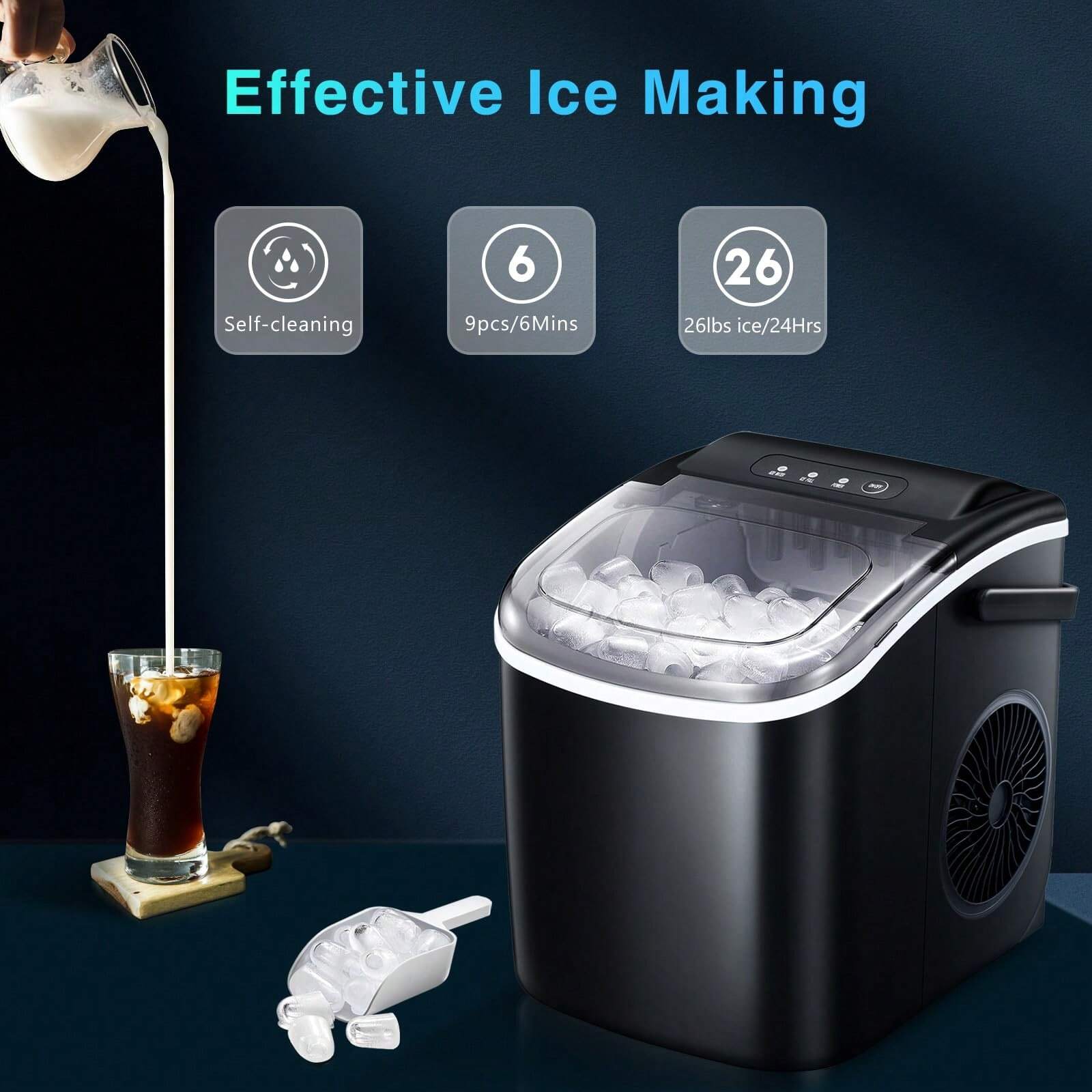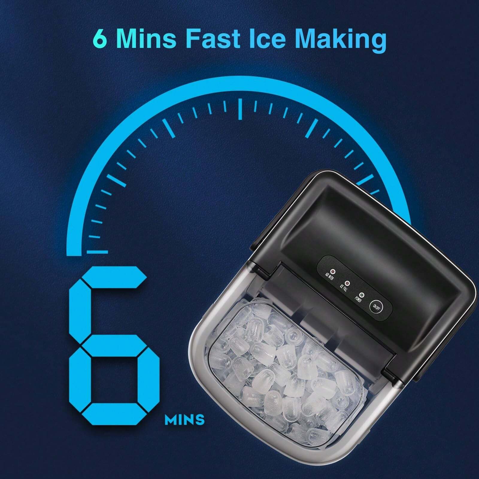 This ice maker is a game-changer! It churns out perfect bullet ice in just 6 minutes, and the self-cleaning feature makes maintenance a breeze. Compact yet powerful, it produces up to 26.5lbs daily—ideal for parties, small kitchens, or home bars. Love how quiet and efficient it is! Highly recommend for anyone who needs ice on demand.