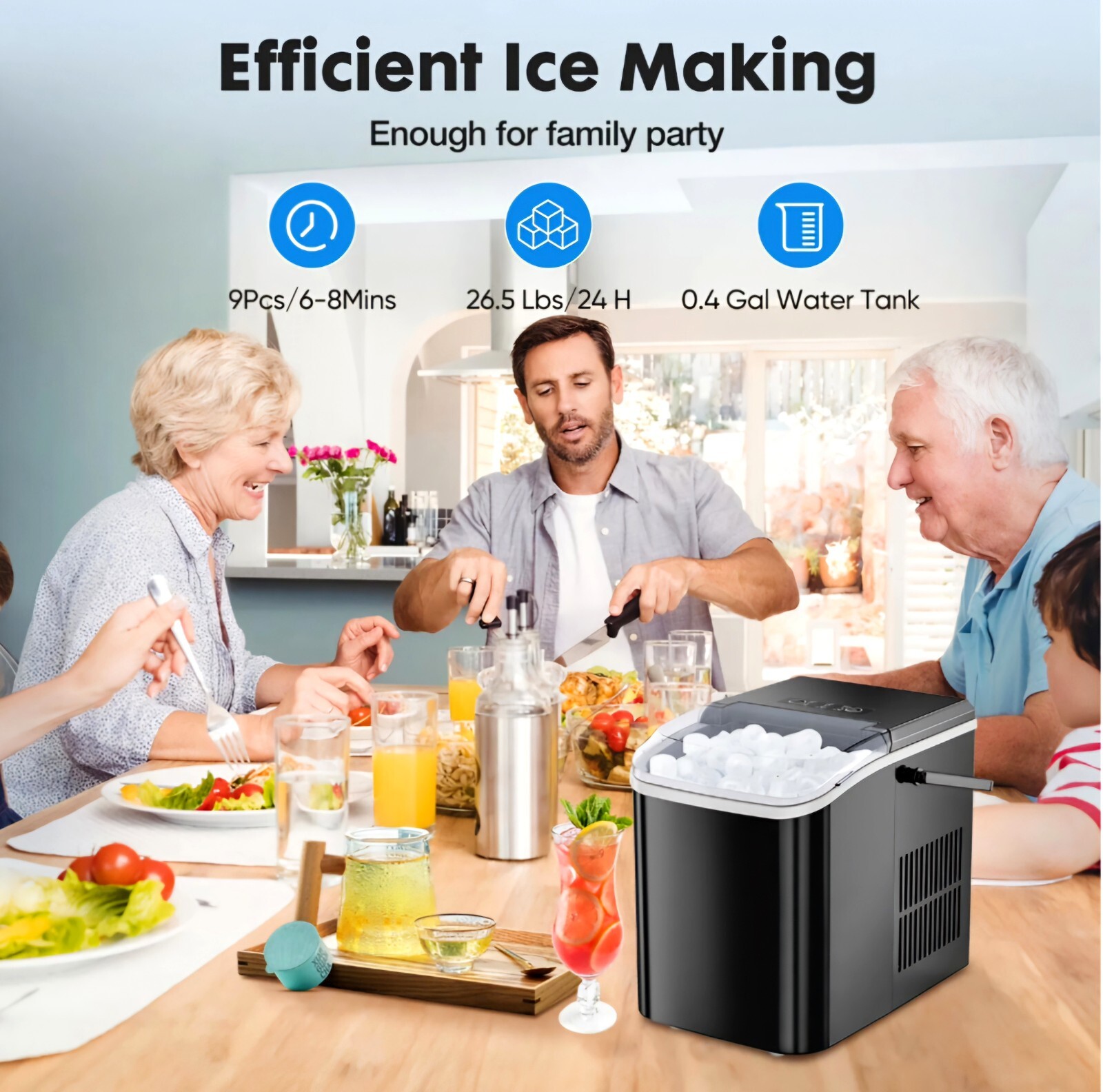 Fresh Ice in 6 Minutes, Freedom for a Lifetime Forget the hassle of refilling trays or running to the store. With this compact, ultra-quiet ice maker, enjoy cold drinks on demand — at home, in your RV, or anywhere life takes you. Portable Ice Maker – 9 Cubes in 6 Minutes | 26 lbs/day | Silent & Self-Cleaning Compact | RV-Friendly | Kitchen Upgrade | Free Shipping USA | 30-Day Returns Why You’ll Love It ✓ 9 ice cubes every 6 minutes ✓ Up to 26 lbs of ice per day ✓ 2 selectable ice sizes (S & L) ✓ Self-cleaning mode (5-sec press) ✓ Ultra-quiet operation (<40 dB) ✓ Bullet-shaped ice – fast & smooth cooling ✓ Includes scoop & removable basket ✓ Portable with handle – ideal for travel What’s in the Box? • Portable Ice Maker • Removable Ice Basket • Ice Scoop • User Manual FAQ – Your Questions Answered Q: Is it noisy? A: No, it runs under 40 dB — quieter than your fridge. Q: Can I select the ice size? A: Yes, toggle between Small and Large with a single button. Q: How do I clean it? A: Press the ON/OFF button for 5 seconds to activate self-cleaning mode. Shipping & Guarantee ✓ Free Shipping (USA only) ✓ Fast Delivery: 3–7 Business Days ✓ 30-Day Money Back Guarantee ✓ U.S.-based Warehouse & Customer Support Secure Yours Now – Limited Stock © Deal Fury Store – Premium Quality, Always