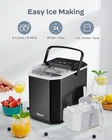 PERFECT COMPACT SIZE: The Silonn Portable Ice Maker is designed to fit seamlessly into your kitchen or RV space, measuring just 8.7 x 11.4 x 11.6 inches. Its compact design allows it to easily occupy your countertop, kitchen island, or desk without crowding your valuable space. EFFICIENT ICE MAKING: Enjoy refreshing bullet-shaped ice cubes in a mere 6 minutes! With a powerful compressor, this ice maker produces an impressive 26 lbs of ice per day, while its 1.3 lbs storage capacity keeps your ice ready for use. The 1.2 L water tank ensures that the machine is always topped up and ready to go at a moment's notice. CONVENIENT PORTABLE ICE MAKER: Designed for mobility, the Silonn ice maker features a sturdy handle for easy transportation. Weighing only 13.7 lbs, you can effortlessly move this compact machine from room to room or take it along to parties and events. The included ice scoop conveniently attaches to the basket for hassle-free storage. SIMPLE CONTROL PANEL: Making ice has never been easier! With just three simple steps—fill the reservoir, switch the unit on, and select your desired ice size (small or large)—you'll have fresh ice ready in no time. An indicator light alerts you when it's time to add more water or when the ice basket is full, making this ice maker perfect for home or office use. SELF-CLEANING FUNCTION: Maintain the freshness and cleanliness of your ice with the automatic self-cleaning feature. Simply remove the ice basket, add water, and hold the CLEAN button for 5 seconds to activate. In just 30 minutes, you’ll be ready to create a new batch of delicious ice cubes. Product Description The video showcases the product in use. The video guides you through product setup. The video compares multiple products. The video shows the product being unpacked. Grip Ice basket Handle Lift Ice Handle Remove Ice Scoop Share Ice Cubes Enjoy Your Time Enjoy Your Time Enjoy Your Time Enjoy Your Time 1 PARTY 2 KITCHEN 3 OFFICE 4 RV Silonn Ice Maker Series Ice Type Bullet Ice Nugget Ice Bullet Ice Nugget Ice Cube Ice Bullet Ice Nugget Ice Daily Ice Production 26 lbs 44 lbs 22 lbs 45 lbs 44 lbs 26 lbs 33 lbs Water Tank Capacity 1.2L 2.5L 1.8L 2L 3L 1.2L 1.1L Ice Basket Capacity 1.3 lbs 2.6 lbs 1.8 lbs 2.6 lbs 2.4 lbs 1.3 lbs 1.76 lbs Package Content Ice Scoop, Ice Basket Pull-Out Basket & Water Tank Ice Scoop, Ice Basket Ice Scoop, Ice Basket Ice Scoop, Ice Basket Ice Scoop, Ice Basket Ice Scoop, Ice Basket Dimension 8.7 x 11.4 x 11.6 inches 14.8 x 13.6 x 9.4 inches 13.1 x 9.0 x 11.6 inches 13 x 9 x 16 inches 13.78 x 9.53 x 14.57 inches 8.7 x 11.4 x 11.6 inches 12.83 x 14.88 x 10.12 inches Color Options 4 Optional Colors Optional Wi-Fi Version - - - - -