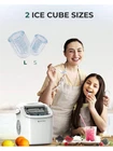 Description - Rapid 6-Min Ice - Enjoy perfect ice in a flash with this countertop ice maker. With 6-minute cycles, get 9 bullet-shaped ice cubes at a time and produce up to 26lbs of ice per day. Say goodbye to buying ice forever! - Quiet & User-Friendly - Experience ice-making tranquility with this whisper-quiet machine, under 35dB, comparable to a running fridge. Infrared sensors stop ice production when full, and a low water reminder makes it stress-free - Store Ice in Fridge - If the ice cubes in the basket are not used for a while, they will melt. Use the included ice bags and scoop to transfer them to the refrigerator for later use - Effortless Self-cleaning -The Self-cleaning feature thoroughly cleans every nook and cranny of the ice maker with circulating water. We suggest washing the machine before long-term storage and ensuring it is dry inside - 2 Ice Size Available - Get perfectly chilled drinks with two ice sizes to choose from. Small cubes for chilling seafood and beer, large cubes for beverages. Enjoy refreshing drinks with family and friends Plug(Voltage): US B Type Plug(110-127V) Power Supply: Wall Plug Material: ABS On Jul 8, 2024 at 08:39:08 PDT, seller added the following information: