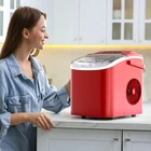 【Efficient Ice Making】Equipped with a high-quality R600a compressor, this tabletop ice maker can produce approximately 9 ice cubes in 6-8 minutes and up to 26 lbs of ice cubes in 24 hours. You can get fresh ice whenever you want with this low-noise countertop ice maker. 【Compact Ice Maker】With dimensions of 8.66*11.73*11.22inch, the compact ice maker will take up little counter space while providing practical functions. Whether for commercial use in coffee shops, bars, restaurants, and KTVs, or for residential use in home kitchens and parties, the portable and powerful ice maker will meet all your needs. 【Bullet-shaped Ice Cubes & Contains Ice Bags】The round and smooth bullet-shaped ice will not hurt your mouth and will not easily stick together. The hollow design allows ice to float on your drink without affecting its flavor, making it ideal for whisky, beer, and drinks. In addition, it can also be used for frozen food and cold first aid. The ice maker countertop comes with 2 ice bags, helping you store the fresh ice cubes to the fridge easily. 【Self-cleaning Function】The portable ice maker has an advanced self-cleaning feature. Simply press the "On/Off" button for five seconds after adding water to use it. Cleaning the machine on a regular basis aids in the removal of harmful substances and the extension of the machine's service life. 【Multiple Smart Functions & Easy Operation】Our ice maker indicators will remind you to take out the ice cubes when the basket is full and will alert you to add water when the ice maker is low on water. Simple and clear control panel is user-friendly enough for you to operate. The transparent viewing window lets you monitor the ice-making process, and the removable ice basket and ice scoop make removing ice a breeze.