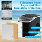 【Fast Ice Making】: The ice maker only takes 7 minutes to make 9 bullet-shaped ice cubes. Fill 1.2L of water into the water tank, maximum ice capacity can reach 26 pounds in 12kg/24 hours. 【Quiet and User Friendly】: When making ice cubes, the noise is lower than 35dB, similar to a working refrigerator. The transparent lid allows you to monitor the ice capacity. Our sensor automatically detects when ice is full and stops producing to prevent overflowing. 【Easy to Control】: Our control panel is very easy to operate. Fill the ice maker with water, press the on button, and that’s it. When the water is insufficient or the ice basket is full, the indicator light will turn on. 【Self-cleaning】: Our ice machine is portable and efficient with the size of L23 x W30 x H30cm. Press the on/off button for 5 seconds to start the self-cleaning process. 【Safety & Easy to Clean】: Made of food-grade material, just for your health and safety, no odor. Durable ABS shell, smooth and easy to clean. You can perfectly use it for bar, tea shop, KTV, kitchen, and office. Whether you are in a family bar, pool party, or office, you can choose our ice machine to make your life more efficient and convenient! Counter Top Ice Maker produces 9 bullet-shaped ice cubes within only 6-8 minutes. It even can produce up to 12KG of ice per 24 hours which enables to enjoy fresh chilled wine, whisky, beer, juice, soda all day long. This ice maker is equipped with a quick and quiet cooling system. This not only helps you save energy but also keeps the nugget ice machine cool and ensures a quiet environment. It can be easily carried around and placed on a flat surface almost anywhere. With an outlet and drain plug at the bottom, easy to empty the unused water. It also has an alarm device for full and lack of water, so you don’t need to stare at it at any time. Specifications: Type: Countertop Ice Maker Voltage/Frequenvy: 220V/50Hz Power rating: 240W Ice making capacity: 12kg (26lbs)/24hr Ice Basket Capacity: 0.6Kg Inside Reservoir: 1.2L Color: Black Weight: 6.2kg Product Size: 23× 30× 30cm Ice Shape: Bullet Operating Cycle: 6-8min Package Content: 1 x Countertop ice maker 1 x User manual