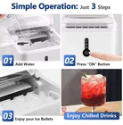 KUMIO ICM-1221 High Efficiency Ice Maker Model: ICM-1221 Dimensions: 12.6"D x 8.98"W x 11.69"H Capacity: 1.5 Liters Wattage: 120 watts About this Item: Rapid Ice Production: The KUMIO ICM-1221 countertop ice maker efficiently produces 9 thick, bullet-shaped ice cubes in just 6-9 minutes. With a 1.5-liter water reservoir, it can generate up to 26.5 lbs of ice in a 24-hour period, ensuring you have a steady supply of fresh ice for all your needs. Convenient & Easy to Use: Featuring a user-friendly one-touch control panel, this ice maker is simple to operate. A large transparent lid lets you keep an eye on the ice-making process, while an infrared sensor automatically halts production when the ice basket is full to prevent overflow. Clear indicator lights alert you when the water level is low or the ice basket needs attention. Included are a removable ice basket and a scoop for effortless ice transfer. Quiet & Versatile Performance: Designed with a powerful compressor, high-quality condenser, and eco-friendly R600a refrigerant, this model offers quiet operation, efficient cooling, and minimal energy consumption. The smooth, rounded bullet-shaped ice is perfect for a variety of uses, from chilling beverages and blending smoothies to food preservation and first aid. Portable & Compact Design: Measuring just 8.98 x 12.6 x 11.69 inches and weighing 16.98 pounds, this portable ice maker is ideal for use in kitchens, offices, RVs, camping trips, and bars. The durable ABS case is easy to clean, and the built-in spout and drain plug facilitate effortless disposal of unused water. Customer Support & Manual: KUMIO offers 24/7 online customer service for any questions or issues you may encounter. For detailed instructions, refer to the user manual. Please ensure the machine remains upright for 24 hours before its first use for optimal performance. Enjoy the convenience of high-quality ice on demand with the KUMIO ICM-1221!