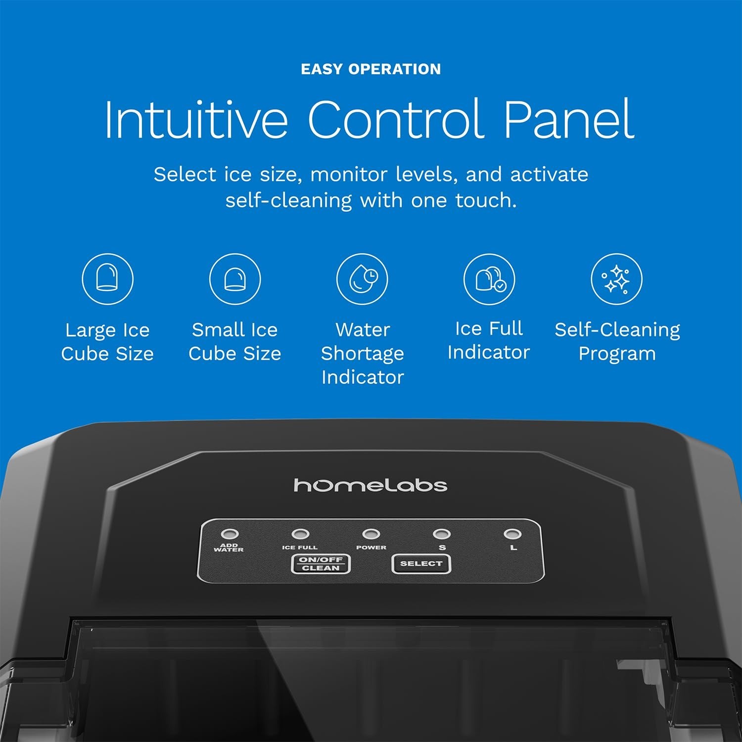 hOmeLabs “Ice Station” Bundle — Countertop Bullet-Ice Maker Turn any counter into a sleek ice station. This compact, black hOmeLabs ice maker delivers bar-quality bullet ice fast—up to 26 lb per day—and comes as a complete bundle with an ice scoop and five ice bags so you can stock, store, and serve like a pro. Why you’ll love it • Complete Ice Station Bundle: includes ice scoop + 5 ice bags for easy portioning and freezer storage • Two bullet-ice sizes: choose Small for rapid chilling or Large for slow-melting cocktails • Fast cycles: first scoops in minutes, so guests aren’t waiting around • One-touch self-clean: a dedicated Clean mode helps keep ice tasting fresh • Premium, compact design: transparent viewing window, removable ice basket, and simple front drain—perfect for kitchens, bars, offices, dorms, RVs, and apartments • 1-year Warranty Key features • Up to 26 lb of ice per day • Two ice sizes (S/L) for cocktails, iced coffee, smoothies, and more • Clear status lights for Add Water and Ice Full • Quiet, efficient countertop operation • Sleek black finish pairs with modern appliances What’s in the box • hOmeLabs Countertop Ice Maker • Ice Scoop • Five Ice Bags • Removable Ice Basket • User Guide How to use (quick start) Fill the reservoir with potable water. Press On/Off and select Small or Large ice. The ice basket lifts out for easy serving; when full, the unit pauses automatically. Use the included bags to portion and store extra ice for later. Care tips for great-tasting ice • Run the self-clean cycle regularly. • Refresh the water daily, especially before gatherings. • Wipe the interior and basket dry between uses for best clarity and flavor. Elevate every pour - from iced lattes to weekend cocktails with the hOmeLabs Ice Station Bundle. It’s the clean, fast, and stylish way to keep perfect ice on tap.