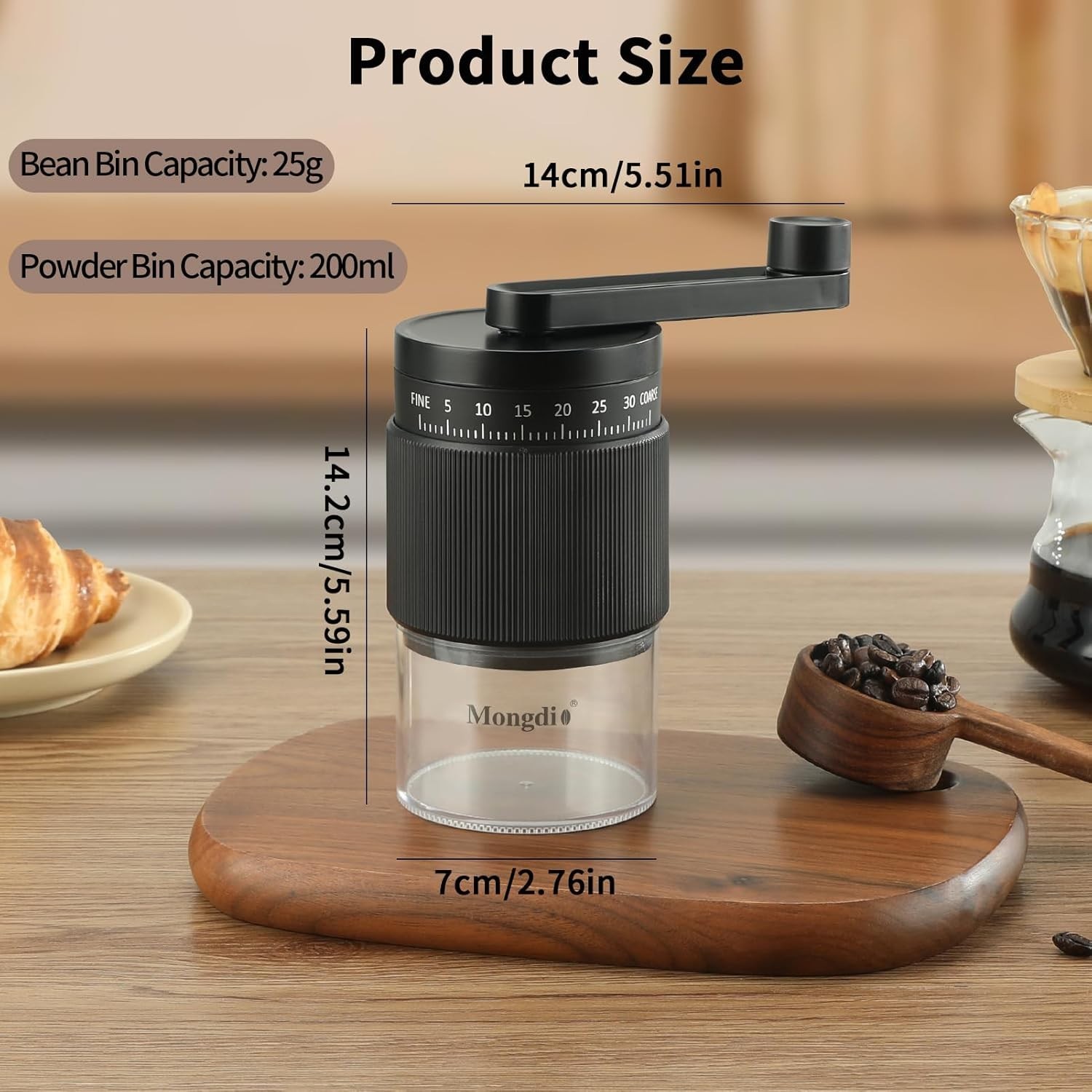 Portable Manual Coffee Bean Grinder with 35 Grind Settings Hand Coffee Grinder Color: Black Material: Plastic Recommended Uses For Product: Grinding Specific Uses For Product: Grinding MATERIAL: This grinder is made of high quality ABS plastic and ceramic burrs, sturdy and durable and comfortable to the touch, stylish and textured appearance, ergonomic handle design, can effectively reduce hand fatigue. 35 EXTERNALLY ADJUSTABLE SETTINGS: The grinder is equipped with 35 externally adjustable grind settings that allow you to grind exactly the right amount of ground coffee for different brewing equipment and personal tastes, while retaining the maximum aroma and flavor of the coffee beans. The rich flavor of freshly ground coffee can be tasted in every cup. CERAMIC GRINDING CORE: The internal high-quality ceramic grinding core is able to grind the coffee beans evenly and ensure the consistent particle size of the coffee powder. The ceramic grinding core will not produce metallic odor, ensuring the pure taste of coffee. And the noise generated in the grinding process is relatively small. Let you enjoy a quieter operating environment. EASY TO CLEAN: The coffee bean grinder features a detachable design, so you can easily disassemble the parts for thorough cleaning. It can also be rinsed and dried directly with water to ensure the pure flavor of coffee every time you grind it. COMPACT AND PORTABLE: Our grinder is compact and portable, hand cranking without electricity, the grinder has a removable handle and top cover for easy storage. The top cover can also be used as a makeshift bean holder, making it easy to grind your coffee beans wherever you go. Ideal companion for outdoor traveling and camping, let you enjoy grinding coffee in nature! Return Policy: We offer a 30 day return policy from the receiving date. Please contact us for a Free Return Label. Please use our return label so it will go back to our supplier and we can do a refund or replacement afterwards. Feedback: Your satisfaction is very important to us! If you have any problem with your order, please contact us and we will do our very best to make you satisfied. As long as you are happy with your purchase, please leave a positive feedback for us. We will always leave you a positive feedback in return. If you have any problem with your purchase, please do not leave a negative feedback. Please Contact us ... and your issue will be solved quickly and positively We are a small family-owned business trying to make a living, not a huge company that does not care ... We will ALWAYS do our best for you!