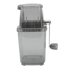 Feature: 1. WIDE APPLICATION: This ice crusher is great for shaved ice, snow cones, slush, margaritas, fun drinks, and more 2. MANUAL OPERATION: Support hand crank, no electricity and batteries are required. Built in stainless steel knives. There are screws on both ends of the cutter, which can be used to adjust ice cubes of different thicknesses according to your preference 3. EASY TO USE: Just add ice cubes to the top container, put the lid on top, and start turning the handle over and over until the ice cubes are crushed to your liking 4. FAST SPEED: In about 20 seconds, you can enjoy a delicious drink made of refreshing ice cubes with fruit or seasoning 5. PERFECT FOR PARTIES: Ice crusher is designed to smash ice cubes into soft, fluffy snow. Great for parties and celebrations Specification: Item Type: Manual Ice Crusher Product Material: Stainless steel, PP, PS Weight: 580 g / 20.5 oz(approx.) Package List: 1 x Manual Ice Crusher