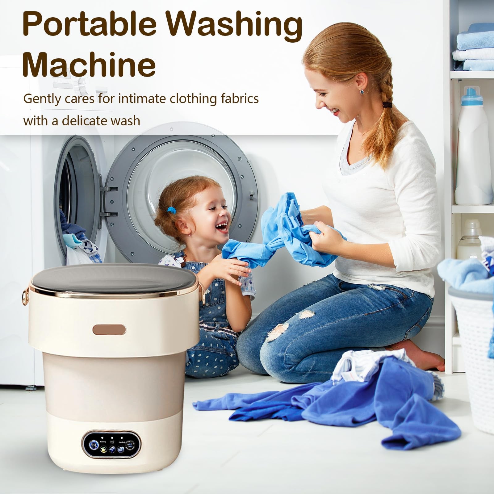 Portable & Space - Saving Design: This compact washing machine weighs just 4.6 pounds and comes equipped with a spin basket, a drain hose, and a blue - light function. Its lightweight and space - saving nature makes it an excellent choice for apartments, dormitories, RVs, and even camping or travel. Gentle on Delicate Items: Made from TPE and silicone materials, it's perfect for washing delicate items like underwear, Tiny clothes, diapers, towels, socks, and toys. It meets your most intimate laundry needs gently yet effectively. 15L Capacity Upgrade: With a 15 - liter capacity, this portable washer can handle one adult load at a time, including up to 3 t - shirts, 6 towels, 6 undergarments, or 6 children's items. Wash more with less effort and reduce the number of loads. Powerful Stain Removal: Featuring timer options, this mini washing machine mimics hand - scrubbing with precise wash speeds, ensuring effective stain removal. It can meet a wide range of cleaning requirements. Innovative Folding Design for Storage: The unique folding design maximizes space efficiency. When unfolded, it measures 12x13x13.5 inches, and when folded, it's only 12x12.5x5 inches. You can easily it under a bed or in small spaces without any clutter. Portable & Space - Saving Design: This compact washing machine weighs just 4.6 pounds and comes equipped with a spin basket, a drain hose, and a blue - light function. Its lightweight and space - saving nature makes it an excellent choice for apartments, dormitories, RVs, and even camping or travel Gentle & Effective: Crafted from TPE and food-grade silicone materials, this mini washing machine is ideal for washing delicate items such as underwear, baby clothes, diapers, towels, socks, and toys. Gentle yet effective for your most intimate laundry needs. Gentle on Delicate Items: Made from TPE and silicone materials, it's perfect for washing delicate items like underwear, Tiny clothes, diapers, towels, socks, and toys. It meets your most intimate laundry needs gently yet effectively 15L Capacity Upgrade: With a 15 - liter capacity, this portable washer can handle one adult load at a time, including up to 3 t - shirts, 6 towels, 6 undergarments, or 6 children's items. Wash more with less effort and reduce the number of loads. Powerful Stain Removal: Featuring timer options, this mini washing machine mimics hand - scrubbing with precise wash speeds, ensuring effective stain removal. It can meet a wide range of cleaning requirements Innovative Folding Design for Storage: The unique folding design maximizes space efficiency. When unfolded, it measures 12x13x13.5 inches, and when folded, it's only 12x12.5x5 inches. You can easily it under a bed or in small spaces without any clutter