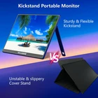 1200P 16'' Portable Laptop Monitor: The 16" portable monitor with 1920x1200P, featuring 300cd/m² brightness, a 1200:1 contrast ratio, HDR, Freesync, and low blue light, making your gaming and work experience truly immersive. It is suitable for various application scenarios such as meeting rooms, shopping malls, office buildings, cafes, universities, and industrial parks Adjustable Stand: The pull-out kickstand attached to the back stays exactly where you adjust it, Its ability to work in both landscape and portrait modes adds to its versatility, whether you’re working, gaming, extending your laptop screen, or using it as a handy phone display Plug and Play Portable Monitor: Simply connect to power and display signal transmission using a USB Type-C cable - no drivers needed. Portable monitor for laptop equipped with 2 USB Type-C ports and Mini-HDMI port, easily connect to your laptop, PC, cell phone, Mac, PS5/PS4, Switch for seamless connectivity on-the-go(Note: Thunderbolt 3.0 or USB 3.1 Type C DP ALT-MODE required for compatibility) Multiple Display Mode: This portable computer monitor supports duplicate, extended, second screen, and vertical display mode, bringing high efficiency to your meetings, work from home, and travel. Having a second monitor for laptop significantly enhances your multitasking abilities, allowing you to handle multiple tasks with ease! Slim and Lightweight: This 16" external monitor for laptop portable is only 1.58 pounds and 0.37 inches thick, it's the perfect size for packing in your bag and taking with you wherever you go. It would have made traveling for work so much more enjoyable, you can watch movies, play games, or get work done at the airport, hotel, or even a coffee shop! Plus, with a 2-year warranty and offers 24/7 customer service