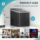 Enhance your ice-making with the compact black ice maker! Ice machine countertop produces bullet-shaped ice cubes in just 6 minutes. Stylish and compact, it features a removable ice basket and an automatic cleaning function for added convenience. Monitor the ice-making process with the infrared sensor. Its small size makes it easy to store anywhere, making it ideal for home use or RV adventures. This portable ice maker is perfect for chilling your favorite beverages! Specifications: Operating Cycle: 6-13 minutes Ice Production per Cycle: 9 pieces Ice Type: Bullet Ice Basket Capacity: 1. 3 lbs Daily Ice Production: 26 lbs Refrigerant: R600a Dimensions: 9. 25 inches (L) x 11. 61 inches (W) x 11. 41 inches (H) Net Weight: 13. 46 lbs Package Includes: 1 x Countertop Ice Maker 1 x Ice Scoop 1 x Ice Basket 1 x Instructions Lightning-Fast Ice Making : Our Euhomy ice maker only takes 6 minutes to make 9 bullet-shaped ice cubes. With a 1. 2L water tank and powerful compressor, the portable ice maker easily makes maximum ice capacity to 26lbs ice per day and holds up to 1. 3lbs ice at a time. Portable design : Our ice maker comes with a sturdy handle, weighs only 13. 38lbs and with compact size. Those features make ice maker easy to carry and perform well on any occasions like Kitchen/Home/Camping/RV. Effortless Maintenance : With a easily control panel that simplifies operation to merely two steps-filling with water and pressing the"Ice/Clean" button-our ice maker. Our countertop ice maker includes an automatic cleaning function, simplifying upkeep and freeing you from manual cleaning tasks. Quiet Operation: Experience the convenience of a compact ice maker with a whisper-quiet operation. With large see-through window visualized design, Our ice maker allowing monitor the ice production process. Equipped with a 170w upgraded compressor that 4kWh per day energy consumption to save your electricity bills. Healthy Material : Providing healthy and safe food to customers is an important issue. Euhomy ice maker is made of food grade material, which can effectively take care of your health. The newly designed countertop ice maker produce the most popular bullet-shaped smooth ice cubes, which won't stick together easily or hurt your hands or mouth even are excellent for cold drinks or iced coffee