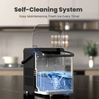 Portable Ice Maker Machine Self-Cleaning Compact Countertop Ice W/ Scoop Basket Rapid Ice Production: This ice maker produces 9 bullet-shaped ice cubes in just 6 minutes, making up to 26.5 lbs of ice in 24 hours. Enjoy a constant supply of ice without the long wait. Portable & Compact Design: Weighing just 15.4 lbs, this compact ice maker comes with a convenient carry handle, making it easy to transport. It's perfect for the kitchen, office, bar, RV, or parties. Two Ice Cube Sizes: Choose between small and large ice cubes to suit various needs. Small cubes are perfect for chilling seafood, beer, or soft drinks, while large cubes are ideal for making iced coffee or other cold beverages. Self-Cleaning Function: With the simple press of a button, activate the self-cleaning mode to easily maintain cleanliness and hygiene. This feature ensures fresh, healthy ice every time you use it. User-Friendly & Quiet Operation: The easy-to-use control panel allows for smooth operation, with indicator lights that alert you when water is low or the ice basket is full. With a noise level under 40dB, it runs quietly, similar to a refrigerator.
