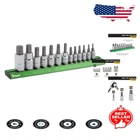 Portable Torx Bit Socket Set: 13 Pieces with Magnetic Organizer & Plated Finish ‹ › ‹ › ‹ › ‹ › ‹ › ‹ › ‹ › Portable Torx Bit Socket Set 13 Pieces with Magnetic Organizer & Plated Finish Set Includes: (2) 1/2-Inch drive bits: T60, T70 (5) 3/8-Inch drive bits: T40, T45, T47, T50, T55 (6) 1/4-Inch drive bits: T10, T15, T20, T25, T27, T30 Anodized aluminum storage rail Features: Crafted from chrome vanadium for superior durability Corrosion-resistant plated finish to ensure longevity S2 alloy steel bits provide exceptional strength Anodized aluminum magnetic rail securely sticks to ferrous metal surfaces for easy organization Compact design for easy portability Why Choose Our Portable Torx Bit Socket Set? Engineered for the discerning professional as well as passionate DIYers, this Portable Torx Bit Socket Set is the ultimate solution for those seeking reliability and performance. With a comprehensive selection of 13 precision-engineered Torx bits, you'll have the right tool for any job at your fingertips. Each bit is crafted from premium materials, ensuring strength and durability you can trust, while the corrosion-resistant finish adds to the overall longevity of the set. The included anodized aluminum magnetic rail not only keeps your workspace tidy but also adheres to metal surfaces for convenient access. Experience the elegance of organization and precision in one sophisticated set. Don’t compromise on quality. Elevate your tool collection with our Portable Torx Bit Socket Set today! Shipping Free & Fast Shipping - We offer free shipping to most of the USA with a normal delivery time of 3-7 days. However, due to the current situation, additional delivery time (up to 3 weeks) may be required for some items. Alternative Carriers - We may use alternative carriers (e.g. USPS, FedEx, UPS, etc.) to ensure your package arrives safely and on time. Due to the use of multiple carriers, we are unable to provide a tracking number automatically. Handling Time - Orders are processed and shipped within 1-2 business days of receiving cleared payment. Shipping Restrictions - Shipping to Alaska, Hawaii, Puerto Rico, Guam, and other US territories may incur shipping charges or delivery restrictions. Please contact us before ordering, or your order can be refunded/cancelled. State Restrictions - There may be restrictions based on your state of purchase. For example, certain items may not be shipped to California due to state regulations. Contact for Tracking Updates - If you require tracking updates or have any concerns about the delivery of your order, please feel free to contact us, and we will be happy to assist you. Return 30-Day Hassle-Free Returns - We want you to be completely satisfied with your purchase. If you are not, you can return the item within 30 days of receiving it for a full refund or exchange. Easy Return Process - To start a return, simply contact us and we will provide you with a prepaid return shipping label and detailed instructions. Restocking Fee - There are no restocking fees for returns. However, the buyer is responsible for return shipping costs if the return is not due to a seller's error. Refund Processing Time - Refunds will be processed within 5 business days of receiving the returned item in its original condition. Payment We accept all major credit cards, PayPal, and Apple Pay for your convenience. Your payment information is secure and encrypted to ensure a safe and seamless transaction. Please complete your payment within 3 days of purchase to avoid any delays in shipping. Feedback Your feedback is extremely important to us. We strive to provide the best products and customer service possible. If you are satisfied with your purchase, please take a moment to leave us a positive review. If you have any concerns or issues with your order, please contact us before leaving negative feedback. We are committed to resolving any problems and ensuring your satisfaction. Contact Us If you have any questions or concerns, please feel free to reach out to our customer support team. You can contact us through the eBay messaging system. We are available Monday to Friday, 9:00 am to 5:00 pm EST, and we will do our best to respond to your inquiry within 24 hours. Buy it now and enjoy a pleasant shopping experience! Manufacturer Part Number: Torx Bit Socket Set UPC: Not Set Unit Quantity: 1.45 lbs Tools Included: Sockets,Torx Bit Sockets System of Measurement: Specialty Size: One Size,T10,T15,T20,T25,T27,T30,T40,T45,T47,T50,T55,T60,T70 Brand: Unbranded Socket Type: Standard Drive Type: Torx Drive Size: 1/2in. Surface Finish: Not Set Warranty: No Warranty Number of Pieces: 13 Country/Region of Manufacture: Not Set Unit Type: lb Set or Single Item: Not Set
