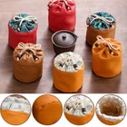 Portable Travel Teaware Storage Pouch Collect Teapot Teacup Antique Jewelry Bag Material: Satin+Leather Extra Protection of Teaware : Nice tea cups storage bag for outdoor trip and an excellent gift for your friends, easy to carry and store teapot and teacups. When you use a cup, you can use the package to hold other things Special Design : Drawstring closure: the closure can be fastened with a drawstring, easy to use, and very beautiful. Package include : 1 x Teacup Bag Notice: 1. Due to lighting, display and other reasons, the color of the real object may be different from the picture, please understand. 2. Since the size is measured manually, please allow errors.