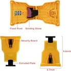 【SAFE & FAST CHAINSAW BLADE SHARPENER】: The universal chainsaw sharpener provides a simple and fast method of sharpening the saw chain. cleverly designed, easy to use and protect your hands from harm, your hands don't need to touch the sharpening stone, just squeeze the chain saw gently, the chainsaw can be sharpened in seconds【PORTABLE CHAINSAW SHARPENER】: This Chainsaw sharpening kit is lightweight and portable. Our chainsaw teeth sharpener fits for most electric chainsaws and gas chainsaws, is easy to use outdoors. The clever design of the chainsaw blade sharpener keeps your saw chain and sharpening stone close together, easily allowing you to sharpen your 14/16/18/20 inches chain saw with two holes anytime and anywhere 【EASY TO USE AND STORE】: The chain saw sharpener takes up very little space and is easy to store. Operation starts: ①Turn on the chain saw blade sharpener. ②Secure the chainsaw to both holes of the chain saw blade sharpener. ③Close the chainsaw blade sharpener and push the lock. ④Gently squeeze the chainsaw down until it hits the sharpening stone. You attach it to the saw and give it 2 bumps, and it's as sharp as new 【QUALITY MADE CHAINSAW CHAIN SHARPENER】:Benefit from our lifetime worry-free after-sales service, ensuring that you can enjoy your chain saw sharpener tool for years to come. We guarantee the quality of every chainsaw sharpener and provide friendly customer service. This fun and perfect tool also makes a great gift for your loved ones 【PERFECT CHOICE】: The package includes: 1 chainsaw teeth sharpener, 5 sharpening stones, 1 work gloves. The chain saw sharpener tool is lightweight and compact, making it portable for outdoor use. It is an ideal tool for men, husbands, friends, repairmen, lumberjacks, landscapers, garden workers, DIYers, and more 【COMPATIBILITY NOTE】 Made of premium ABS plastic, this lightweight and durable chainsaw sharpener is suitable for most 14" / 16" / 18" / 20" chain saws. There are 2 pins on the chain saw sharpener to hold the chainsaw bar. The second pin is adjustable. The distance between these two pins (holes) is about 0.7-1.3 inches, please note that any chainsaw with a single hole or no hole is not compatible Product Description The chainsaw can make the dull chain clear again in just 3-5 seconds. This product is suitable for most 14" / 16" / 18" / 20" chains . Easy to install and operate the tools. Safety, effectively improve the efficiency of your work. Lightweight and easy to carry, the chain saw sharpening tool is easy to use outdoors, protecting your hands from injury. Specification: Material: Plastic + Whetstone Size: 8.5” * 5.7” Color: Yellow Pack: Chain saw sharpening x1 Whetstone x5 Glove x1