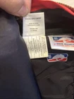 This pre-owned Herschel Supply Co. backpack features a unique NBA Portland Trail Blazers design with a red satin material. It has a zip closure and is suitable for travel or casual use. The medium-sized backpack includes a laptop sleeve for protection and adjustable straps for comfort. With a sporty theme, this backpack is ideal for school or sports-related activities. Made of polyester and satin, it offers a stylish and functional option for men on the go. Defects : there are some stains on the bag and some scratches but it Isint too noticeable unless you look closely