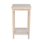 This beautiful solid wood accent table features a butcher block surface. You can leave it unfinished or paint/stain it any color you wish. [SOLID PARAWOOD CONSTRUCTION]: Crafted from solid parawood, known for its remarkable sturdiness and longevity. This high-quality material ensures that the table remains durable and reliable for years to come. [CUSTOMIZABLE FINISH]: This untreated wood allows you to paint or stain it in any color you prefer, giving you the freedom to customize it to match your decor. Personalize your table to fit your unique style. [DIMENSIONS]: Overall dimensions are 16"W x 14"D x 29"H, with a shelf size of 14.4" x 12.4". These dimensions provide ample space for various uses. [AMPLE STORAGE]: Includes shelf with a distance from apron to top of shelf of 21.5" and a distance from floor to bottom of shelf of 4.1". Organize your items with ease. [EASY ASSEMBLY]: Quick and hassle-free assembly with all necessary hardware included. You can put it together in no time, without the need for any special tools or expertise.