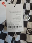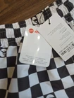 This is a pair of Posh Peanut swim trunks for boys, featuring a black and white checkered flag pattern with a Peanuts character theme. The trunks are size small and lined for added comfort. The brand is Posh Peanut, and the swim bottoms are designed in a trunks style.