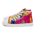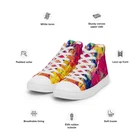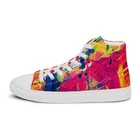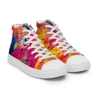 The Positive Vibes Shoes Men's UVelsi Limited Edition High Top Handmade Sneakers are stylish sneakers with a lace-up closure, featuring a white color with a solid pattern. These high-top sneakers are designed for various occasions and activities, offering comfort and performance with cushioning and lightweight design. They are part of a premium product line and feature a unique, colorful theme, making them a standout choice for men's footwear. Step up your shoe game with the High Top Canvas Shoes. These handmade, trendy shoes are sure to spice up your outfit. Get yours now! • 100% polyester, canvas upper side • Ethylene-vinyl acetate (EVA) rubber outsole • Breathable lining, soft insole • Faux leather toe cap • Padded collar, lace-up front • Soles and laces in matching colors Size guide preview (Imperial) US Men UK Europe Foot Length Japan Outsole Length 5 5 4 37.5 9 ⅛ 23 10 ¼ 6 6 5 38.5 9 ½ 24 10 ⅝ 7 7 6 40 9 ¾ 25 10 ¾ 8 8 7 41 10 ⅛ 26 11 ⅛ 9 9 8 42.5 10 ½ 27 11 ⅝ 10 10 9 44 10 ¾ 28 12.00 11 11 10 45 11 ¼ 29 12 ⅛ 12 12 11 46.5 11 ¾ 30 12 ¾ 13 13 12 47.5 12 31 12 ¾ 5.5 5.5 4.5 38 9 ¼ 23.5 10 ¼ 6.5 6.5 5.5 39 9 ⅝ 24.5 10 ⅝ 7.5 7.5 6.5 40.5 10.00 25.5 11 ⅛ 8.5 8.5 7.5 42 10 ¼ 26.5 11 ⅜ 9.5 9.5 8.5 43 10 ⅝ 27.5 11 ⅝ 10.5 10.5 9.5 44.5 11.00 28.5 12 ⅛ 11.5 11.5 10.5 46 11 ½ 29.5 12 ½ 12.5 12.5 11.5 47 11 ⅞ 30.5 12 ¾ Size guide preview (Metric) US Men UK Europe Foot Length Japan Outsole Length 5 5 4 37.5 23.2 23 26.2 6 6 5 38.5 24.1 24 27 7 7 6 40 24.8 25 27.3 8 8 7 41 25.7 26 28.3 9 9 8 42.5 26.7 27 29.5 10 10 9 44 27.3 28 30.5 11 11 10 45 28.6 29 30.8 12 12 11 46.5 29.9 30 32.4 13 13 12 47.5 30.6 31 32.4 5.5 5.5 4.5 38 23.5 23.5 26.2 6.5 6.5 5.5 39 24.5 24.5 27 7.5 7.5 6.5 40.5 25.4 25.5 28.3 8.5 8.5 7.5 42 26 26.5 29 9.5 9.5 8.5 43 27 27.5 29.5 10.5 10.5 9.5 44.5 28 28.5 30.8 11.5 11.5 10.5 46 29.2 29.5 31.8 12.5 12.5 11.5 47 30.2 30.5 32.4