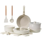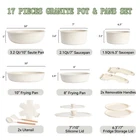 DETACHABLE HANDLE :Experience ultimate kitchen convenience with this 17-piece granite cookware set featuring detachable handles. Effortlessly switch between stovetop and oven cooking.Detachable handles reduce the risk of burns, ensuring a safer cooking experience GRANITE COATING:Cook healthier meals with less oil! The advanced granite coating offers exceptional non-stick performance, ensuring food slides right off while making cleanup a breeze. Plus, The pots and pans set non stick 100% PFOA-free and safe for your family VERSATILITY:From sautéing and frying to boiling and simmering, this pots and pans set does it all. Compatible with all stovetops—including gas, electric, and induction stovetops—and oven-safe up to 500°F, it's the ultimate solution for versatile cooking SPACE-SAVING:These pots and pans maximize your cabinet space! Detachable handles make it easy to stack and store your cookware neatly, whether you’re in a small kitchen, RV, or camping setup. Say goodbye to cluttered cabinets DURABILITY:Built to last, this pot and pan set features a scratch-resistant granite coating and reinforced aluminum construction for even heat distribution. Enjoy consistent cooking results and reliable performance for years to come DISHWASHER SAFE:Cleaning up is effortless! The non-stick granite surface makes it easy to wipe off food residue, and the non stick pots and pan set is dishwasher-safe for even more convenience AESTHETIC APPEAL:Bring a touch of elegance to your kitchen! With its sleek granite finish and contemporary design, this pan sets for cooking nonstick is as stylish as it is functional, making every meal a culinary delight 17 PCS COOKING SET INCLUDES: 1.5QT(6.3") & 2.1QT(7") saucepans, 8-inch & 10-inch frying pans, 3.2QT(10")sauté pan, 2 removable handles, 7-inch & 10-inch glass lids, 6.3-inch & 7-inch fridge lids, 4 pot protectors, silicone slotted turner & ladle