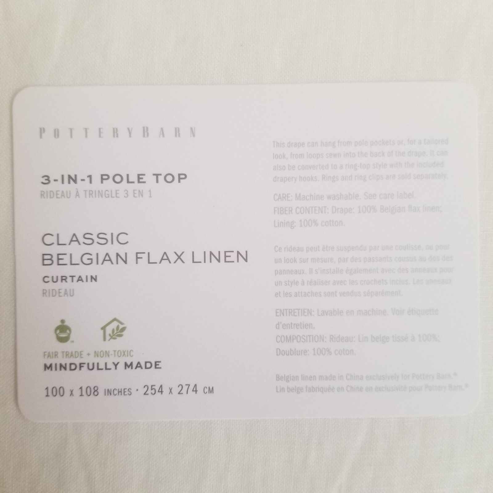Pottery Barn Belgian Flax Linen Curtain 100x108 Cotton Lining Classic Ivory 1739880