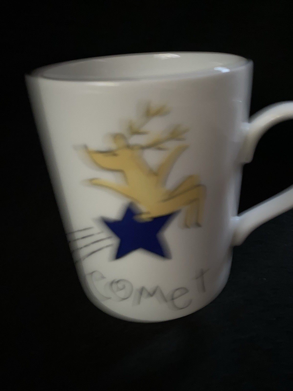The Pottery Barn Christmas COMET Reindeer Mug is a festive and charming ceramic mug perfect for the holiday season. Featuring a white color and adorned with the character Comet, Cupid Blitzen, this mug is a delightful addition to your table decor. Imported from Japan, this mug brings a touch of elegance and tradition to your Christmas celebrations. Enjoy your favorite hot beverages in style with this adorable and collectible Reindeer Mug from Pottery Barn.