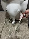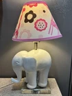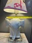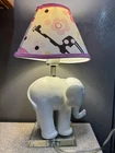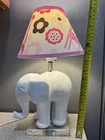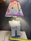 A delightful addition to the nursery, this playful pachyderm is ready to light up the room. Made of ceramic and resting atop a glass crystal base, it's topped with a cute patterned shade in pink floral and giraffe theme. DETAILS THAT MATTER Expertly crafted of ceramic with clear crystal base. Finished in Brushed Nickel. On/off switch located on socket. Clear cord. Shade is included. Weighs 6+ lbs, 16” tall with shade, 8’ cord Recommended 60W light bulb