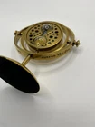 The Pottery Barn Teen Harry Potter Time Turner Desk Clock is a luxurious and magical collectible inspired by the iconic Harry Potter franchise. This reversible quartz clock features intricate details and a shiny gold finish, making it a perfect addition to any fan's collection. With the brand's reputation for quality and design, this clock is sure to enhance any space with a touch of fantasy and wizardry. The clock points downward when the piece is standing on its base as it seems to be a bit off balance