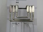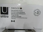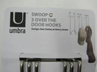 Umbra Swoop Over-the-Door Hooks Plated Nickel Finish Set of 3 #4519M Item is brand new! With original packaging! Auction includes: 3 Hooks Made of iron and EVA with a plated nickel finish. Simple over the door mount. Imported. DIMENSIONS Small: 2" wide x 3.5" deep x 9" high Medium: 2.75" wide x 3.5" deep x 11" high Large: 3.5" wide x 3.5" deep x 13.5" high Weight: 1 pound Weight Capacity: 5 pounds per hook CARE AND MAINTENANCE Wipe with a soft, dry cloth.