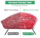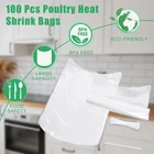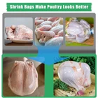 👍Features: Transparent and heat shrinkage bag (Make sure water is above 180) BPA/BPS Free. 50 pcs Heat-Resistant zip ties A silicone straw for extracting air from the bag. Anti-sticking: bags contain a small amount of edible starch to prevent sticking. No freezer burn: good wrapping prevents the food Freezer Burn. ✅Specification : Material: PE Bag size: 13in*20in Zip tie size: 5.7in 📦Package includes: 100 x Poultry shrink wrap bags 50 x White Heat-resistant zip ties 1 x silicone straw 【Easy to Use】 1. Place the clean, dry chicken in the bag, then place the straw into the chicken cavity, and tie the bag tightly with a zip tie. 2.Dip the bag in hot water at 180-195 °F for 5 seconds. 3.Remove the bag from the hot water, wait about 10 seconds for the bag to shrink around the chicken, after 10 seconds, remove the straw, tighten the cable ties, finally chichen in the freezer. 【Food Safety】BPA/BPS Free, transparent heat shrink bags made of safe materials, colorless, odorless, strong and reliable, wear-resistant, leak-proof and waterproof, protect your turkey (or other food) for a long time.(Each bag contains a small amount of edible starch to prevent sticking.) 【You Will Get】50pcs poultry shrink bags, 50pcs Heat-Resistant zip ties, a food-silicone straw (For sucking air out of the bag). The size of the bag is 13''*18'', suitable for shrinking whole (5 - 14 lbs) chicken, rabbit or other food. Large size, ample quantity. 【Keep Food Fresh Longer】Extends the food freshness period 3-5 times, perfectly wraps the food, isolates moisture and air, and locks in freshness and nutrition. Transparent heat shrinkable bags can a variety of foods, such as chicken, rabbit, duck, goose, beef, fish, ham, turkey and other meats. 【No Freezer Burn】The shrink bag can isolate your food from air and moisture (due to its good wrapping), so as to prevent the food Freezer Burn. 【Easy to Use】Simply soak it in 180°-190° hot water, shrink it and tie it up, put it in the fridge.