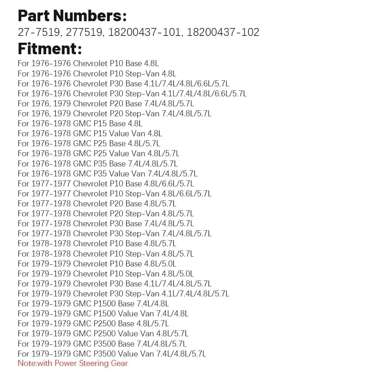 This power steering gear box is a perfect fit for my '68 El Camino—smooth, responsive, and direct replacement for the original. The 14:1 ratio makes steering effortless, and installation was straightforward. No leaks, no play—just solid performance. Highly recommended for classic Chevy owners looking to upgrade or restore their ride!