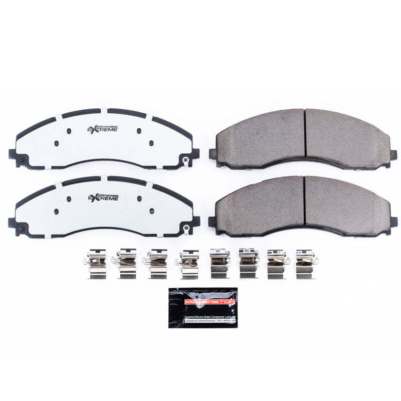 The Power Stop Z36 Truck & Tow ceramic brake pads are designed as an upgrade over stock brakes to reduce brake dust & eliminate noise for those that tow and haul, as well as the off-road enthusiast. These brake pads are made with a low-dust ceramic formula, infused with carbon-fiber to strengthen the compound and provide severe-duty stopping power for trucks and SUVs. Premium stainless-steel hardware along with ceramic brake lubricant is included with the Z36 brake pads making it easier to complete your brake job. Use Z36 Truck & Tow brake pads to give your truck or SUV the severe-duty stopping power it deserves. Z36 TRUCK & TOW CARBON-FIBER CERAMIC BRAKE PADS W/ HARDWARE