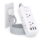 【9-IN-1 Desktop Power Strip with USB C Fast Charge】— With 6 AC outlets, 2 USB ports and 1 USB C power strip, power up 9 devices simultaneously. USB C charging port features 3A Max, USB A charging port features 2.4A Max, With smart charging technology, it can auto-detect your connected devices and can reach faster-charging efficiency, which would charge your devices WITHOUT a variety of converters. Two mounting holes on back allows this power strip to be securely installed in various applications. 【Ultra Flat Plug Power Strip & 5 Ft Flat Extension Cord】 - With only 0.35 inch ultra thin plug and 45 degree right angle design, low profile flat wall plug is mush slimmer than traditional plugs, can close to the wall easily and hide in the back of furniture, bed or refrigerator, no waste for outlet and space. 3mm thicker slim extension cord is made of pure copper, which has better current carrying capacity (15A). 【3 Side Space Saving Design & Widely Space Outlets】— 3-side design and each AC outlets with 1.6 inches space in between, larger than standard 1.5-inch socket, fit big adapters without blocking each other. The compact size (5.0*1.9*1.8 IN) takes up less space on your desk or luggege, essential for the travel, home, office, and college dorm. 【Overload Surge Protection 】 — Features 900 Joules surge protector outlets. Lighted on/off switch with integrated circuit breaker for overload protection of all outlets, It will automatically cut power to protect connected devices when voltage surge is overwhelming. (The "Surge Protected” indicator light on to show your devices are protected). 【Multi Safety Protection】— This travel power strip certified by ROHs, FC, ETL, protected against over-voltage, over-current, over-charge, short-circuiting, over-heating. Fire-resistance PC shell with flame retardant at 1382℉ makes it more durable and longer lifetime.