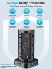 Power Strip Tower with Multiple 10FT without Wireless Charging, Black Product Information 16 in 1 Power Strip Tower with USB: This surge protector power strip tower extends one socket to multiple outlets – 12 AC outlets and 4 smart USB ports (2 USB-A and 2 USB-C). Charge up to 16 devices simultaneously, keeping your desktop organized. Turns a single socket into a versatile multiport charging station, perfect for your home, office, or dorm room Ultra-thin Plug & 10FT Extension Cord Power Strip Tower: This 0.3-inch sleek flat-head plug design provides a flush wall fit, perfect for tight spaces behind sofas, nightstands, bookshelves, and headboards. Its 45° angled outlets prevent blockage. The 10FT extension cord offers versatility for use in homes, offices, dorms, or as college supplies Smart USB Fast Charging: This power strip has 4 USB ports (2 USB-A and 2 USB-C), with a total output of 3.4A. Each USB A has a max output of 3.1A, and the USB C has a max output of 3.4A. The USB-C charges up to 30% faster than the standard 5W charger, saving you time. The flat plug tower is compatible with most USB devices such as smartphones, tablets, earphones etc. It's an ideal option for efficiently charging your diverse gadgets Surge Protection & Overload Protection: This power strip tower features an 1800J surge protector with overload, short-circuit, and over-current protection. The reset/off switch helps you save energy on the go. In case of overload, it shuts off automatically to keep your precious devices safe. Safeguard your gadgets and enjoy a reliable charging environment Space-Saving & Organized Power Tower: The mini vertical power tower, with a compact (3.15*3.15*5.79 inch) design, takes up less space than a traditional power strip when charging multiple devices. It has four rubber feet at the bottom, remaining rock-solid in place to ensure no sliding or falling. This surge protector tower with an extension cord helps keep your desktop neat and organized Shop with Confidence ✔ Fast handling time (up to 3 business days) ✔ Free 30-day returns ✔ Carefully packaged and shipped