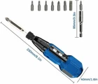 Description: 【Rechargeable Screwdriver】 This wireless electric screwdriver supports USB charging, which is convenient and fast. It can work continuously for 40 minutes after charging for 1 hour. 【Ergonomic Design】 The electric screwdriver has a non-slip handle for easy gripping. 280 RPM and 4N.m electric torque for fast and easy screw driving tasks. 【LED Light】 Built in LED light that illuminates working area, ideal for working in poorly lit areas, such as inside cupboards. 【Dual Heads Bit】 Dual heads PH2 standard bit enables access to most conne spaces, making it easy to work in awkward spaces. 【Easy to Use】 2 buttons control forward and reverse functions respectively, easy to operate. Extension rod and 8 bits helps to make job more easily. Features: 1. USB charging, work continuously for 40 minutes after charging for 1 hour. 2. Non-slip handle for easy gripping. 280 RPM and 4N.m electric torque for fast and easy screw driving tasks. 3. Built in LED light that illuminates working area. 4. Extendable attachment enables access to most conne spaces. 5. 2 buttons control forward and reverse functions respectively, easy to operate. 5. Extension rod and 8 bits helps to make job more easily. Specifications: Item name: Electric screwdriver Package weight: 320g/11.3oz Package size: 20×9×6cm/8×3.5×2.4in Battery capacity: 900mAh Working voltage: 3.6V Charging method: USB Charging voltage: 5V 0.5A Torque: 4N.m(electric), 15N.m(manual) Rotatioanal speed: 280RPM(no load) Chuck: 1/4in(6.35mm) Hex. Charging time: 60 mins Working time: 40 mins Package list: 1 x Electric screwdriver 1 x Dual heads PH2 standard bit 1 x Extension rod 8 x Bits 1 x USB cable SKU# Black MC.BD.239-B(Shipping Weight: 12oz Net Weight: 10.56oz) Blue MC.BD.239-BL(Shipping Weight: 12oz Net Weight: 10.56oz) x - FR ENVELOPE 1 - PADDED FR ENVELOPE 2 - REGIONAL BOX A 4 - MEDIUM FR BOX