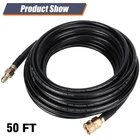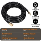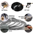 The washer hose is a practical accessory of pressure washer for powerful cleaning. Features: Using pure high strength material, long service life, wear and abrasion resistant. Professional manufacturing with stable performance, very reliable to use. The hose can withstand professional high pressure work, for light commercial and residential washing. Strong twist and durability, easy to carry, drag and roll. Unmarked and never permanently kink. The maximum working pressure is 5800PSI and the length of the whole hose is 50ft, which is more convenient to use. Specifications: Material: PE + Copper Color: Black Maximum Working Pressure: 5800PSI Maximum Temperature: 60℃/140℉ Length: Approx. 15m / 50ft Nozzle Diameter: Approx. 3/8in Package Weight: 1300g / 45.86ounces Package Size: 270 * 250 * 90mm / 10.63 * 9.84 * 3.54in Packing List: 1 * Washer Hose