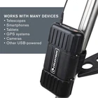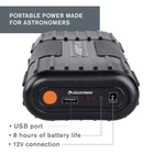 Keep your telescopes, smartphones, tablets, GPS systems, cameras and other USB-powered devices charged and ready with PowerTank Lithium LT—the ideal outdoor portable-charging solution. specially designed this product with the needs of amateur astronomers in mind; it’s packed with useful features. First, you’ll find a 12V connection for your telescope—no cigarette lighter port needed. Once your telescope is connected, attach the battery securely to one of the tripod legs with the included Velcro straps so it is safely out of the way. One USB port keeps your other devices charged, and can be used simultaneously with the telescope charger. When you’re not observing, keep this battery charged and at the ready for unexpected emergencies. PowerTank Lithium LT’s unique Nickel Manganese Cobalt Oxide chemistry which delivers a steady charge over long periods and requires less maintenance than a traditional sealed lead-acid battery. It will last you many times longer thanks to its un-recharged shelf life of 10 years and 2000 charge cycle lifespan. But most importantly, the PowerTank Lithium LT can withstand higher temperatures than standard lithium cobalt batteries and will not be a fire danger if accidentally punctured. All this combined with its rugged design make PowerTank Lithium LT the perfect outdoor power supply. PORTABLE POWER MADE FOR ASTRONOMERS: The perfect solution for most computerized telescopes, PowerTank Lithium LT features a regulated 12V connection, 8 hours of battery life, a USB port, and more. Mounts directly to the tripod leg. SMALLER, LIGHTER, SAFER: Unique Lithium Nickel Manganese Cobalt Oxide chemistry delivers a steady charge over long periods and requires less maintenance than a traditional sealed lead-acid battery. 5 YEARS OF DEPENDABLE PERFORMANCE: Unlike other batteries with limited lifespans, PowerTank Lithium LT will be your companion for 5 full years of astronomy adventures. WORKS WITH A VARIETY OF DEVICES: 12V connection works with all current computerized telescopes. Also includes one onboard USB port to charge your smartphone or other USB-powered devices in the field. AN EMERGENCY KIT ESSENTIAL: Keep PowerTank Lithium LT charged and ready for unexpected power outages. UNBEATABLE WARRANTY & SUPPORT: Buy with confidence from , a leading telescope brand in California since 1960. Your purchase includes a 2-Year US Warranty and unlimited support from our team of US-based experts.