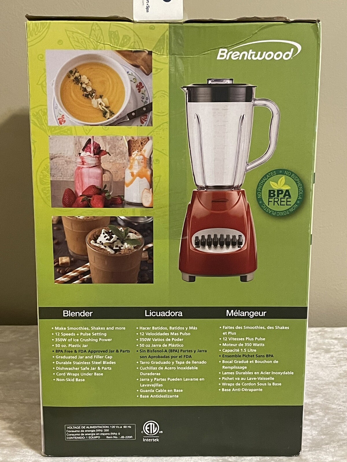 Description: (Estate T) Brentwood Blender + Pulse Blender 12-Speed Red JB-220R ~ New In The Box ~ Never Been Used Before See Pics Of The Box For Best Info Boxed Safely & Ready To Ship See Size & Weight In Pics Ships Same Day Or Following Business Day USPS Monday-Friday ~PLEASE SEE PICS FOR BEST INFORMATION~ I try my best to research everything I have the best that I can. If you see something I have gotten wrong, please let me know & I will happily & gladly investigate it & get it fixed. Thank you π ~ PLEASE SEE ALL PHOTOS & ASK ANY QUESTIONS YOU HAVE BEFORE BIDDING OR PURCHASING. ~ ~ ALL SALES ARE FINAL & SOLD "AS IS" EXACTLY AS SEEN IN THE PHOTOS ABOVE. ~ ~ PLEASE NOTE THAT THESE ARE PREVIOUSLY OWNED ITEMS, THEY MAY HAVE SIGNS OF WEAR, POSSIBLY BELONGED TO ANIMAL LOVERS, SMOKERS, BEEN IN STORAGE FOR SEVERAL YEARS OR EVEN DECADES, ABANDONED, π½πΈ , ETC. ~ ~Boxed Weighed & Ready to Ship ππ¦ ~ Ships USPS Ground same day as purchased or the following business day. Monday - Friday
