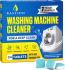 Powerful Cleaning: The Bastion Washing Machine Cleaner Tablets effectively eliminate dirt, grime, and limescale from your washing machine, ensuring a thorough clean every time. One-Year Supply: With 24 tablets in each pack, our one-year supply ensures you have enough tablets for bi-monthly use, keeping your washing machine fresh and efficient all year long. Easy to Use: Simply drop one tablet into the drum, run a hot cycle without any laundry, and let the tablet dissolve to release a cleansing foam that reaches every corner of your machine. Extends Machine Lifespan: Regular use of these cleaner tablets prevents residue buildup, optimizing your washing machine's performance and extending its lifespan. Versatile Compatibility: Suitable for all types of washing machines, including front-loading, top-loading, and high-efficiency models. Tested and approved for GE, LG, Samsung, Whirlpool, Maytag, Electrolux machines & More. Product Description Discover Bastion’s Wide Range of Powerful Cleaning Solutions! Add to Cart Add to Cart Add to Cart Add to Cart Add to Cart Add to Cart Add to Cart Customer Reviews 4.5 out of 5 stars 2,827 4.5 out of 5 stars 1,147 4.4 out of 5 stars 8,932 4.4 out of 5 stars 800 3.6 out of 5 stars 217 4.4 out of 5 stars 800 4.3 out of 5 stars 547 Price $9.99 $ 9 . 99 $9.99 $ 9 . 99 $16.95 $ 16 . 95 $17.95 $ 17 . 95 $9.99 $ 9 . 99 $14.95 $ 14 . 95 $22.95 $ 22 . 95 Intended Area of Use: Washing Machine Dishwasher Garbage Disposal Coffee & Espresso Machines Multi-Use Coffee & Espresso Machines Toilet Tank Form: Tablet Tablet Tablet Tablet Gel Liquid Powder Scent: Unscented Lemon Citrus Unscented Unscented Unscented Unscented Cleans: ✔ ✔ ✔ ✔ ✔ ✔ ✔ Descales: ✔ ✔ ✘ ✔ ✘ ✔ ✔ Maintains: ✔ ✔ ✔ ✔ ✔ ✔ ✔