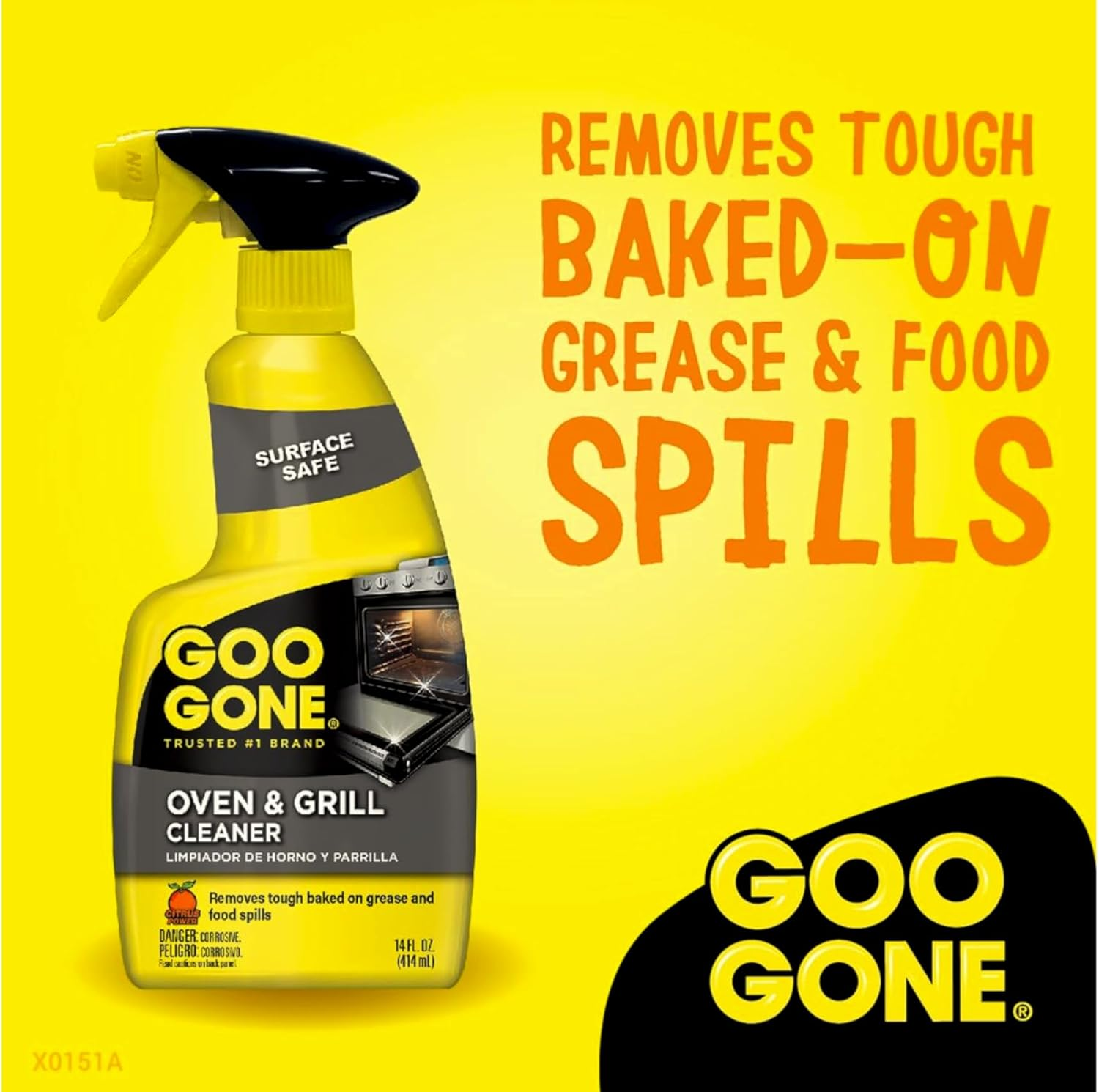 Stay-in-place foam clings to surfaces and does the hard work making it easy to use. Easy - makes clean up and maintaining your surfaces a breeze. The grease-cutting foam clings to vertical and horizontal surfaces and breaks down baked-on, burnt-on, stuck-on grease quickly. Just spray it on and the foam begins to work on the grease. Goo gone oven and grill cleaner penetrates and breaks down tough burnt-on carbon deposits, loosening the bond, without harming the surface of your oven. Multi-Use/ Multi Surface - use on ovens, indoor/outdoor grills and more, do not use on aluminum or faux stainless steel. No Fumes - most oven cleaners contain hazardous chemicals or harmful fumes you need a safer oven cleaner that quickly works on tough baked-on grease and food spills in your oven A dirty oven can lead to excessive smoke bellowing out, can add a charcoal taste to food, and is potentially hazardous; Goo Gone - the #1 trusted brand for cleaning sticky, gummy, gooey messes. The Goo Gone's line of products is a trusted brand, we stand by our products for all of your dirty, sticky, messes. Safe for you, your surfaces and your home! Please explore our line of Goo Gone Original, Pro-Power, All Purpose, Sticker Lifter, Spray Gel, Patio, Grill, Oven, Automotive, Tile & Grout, Clean Up Wipes, Kitchen Degreasers, Paint and more! There are so many ways to remove tough messes with Goo Gone Products. Specifically formulated with Citrus Power, Goo Gone’s portfolio of products effortlessly cleans up stains and sticky messes around your entire home. From gum to grease, fabric to fiberglass, you can count on Goo Gone to safely remove almost any problem and restore your surfaces to their original condition. Oven & Grill Cleaner quickly cuts through even the toughest, burnt-on deposits. Works on baked on grease, food, and food spills. The power to clean baked on messes is yours with Goo Gone Oven & Grill Cleaner. The penetrating foam works fast and dissolves tough baked on grease, and food spills. Goo Gone is surface safe, you may use it on self cleaning and non self cleaning oven interiors, indoor and outdoor grill, oven cooking racks, pots & pans, oven doors & broiler pans, and rotisserie toaster oven interiors. Keep a bottle or two handy for anything life may throw at you or your walls, floors, cars, etc. You get it, Goo Gone is surface safe so it is a safe alternative to abrasive cleaners that may damage your surfaces. Sit back and let Goo Gone take care of your toughest messes.