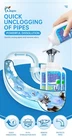 The best part? Water above 85'℃ degrees Celsius is the perfect temperature for use with this cleaner. Keep it handy in case of a clogged pipe emergency! * Powerful Function: It can quickly dissolve pipe blockages such as hair, paper, soap scum, vegetables, fruits, food residue, grease, and organic matter. * Damage-free: It won't damage the glazed surface, drains, pipes, septic system, or other drain pipes made from iron, copper, stainless steel, plastic, PVC, etc. But remember, do not use it in aluminum products as it reacts with aluminum. * Deodorization and Bacteriostasis: Strong dissolving dirt, quick dredging, deodorizing, and inhibiting bacteria growth. * Wide Application: Great for kitchen sinks, washbasins, toilets, floor drains, and so on.
