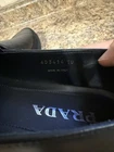 The Prada Slip On 4D3414 10 shoes are stylish and comfortable loafers in black leather. These slip-on shoes are designed for casual wear and feature the iconic Prada branding. With a US shoe size of 11, these shoes are perfect for men looking for a sleek and versatile footwear option. Upgrade your shoe collection with these modern and sophisticated loafers from Prada. Sorry I got rid of box accidentally