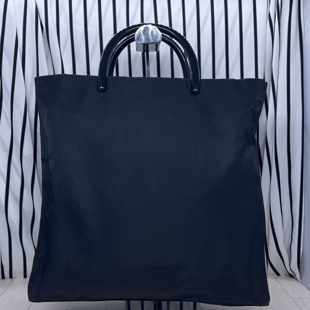 PRADA black tote bag. The main opening has a Velcro closure. An A4 file can be stored inside. It has one interior zipper pocket. There are slight, hard-to-see creases on the bottom board, as shown in the bottom right of image 9. Other than the above, there is some slight feeling of use due to it being a used item, but as you can see, there are no noticeable scratches, dirt, or scuffs, so it is a beautiful bag. Shoulder top to bag: approximately 3.94 inches. Height: 13.39 inches. Width: 13.19 inches. Depth: 4.72 inches. No accessories included. I promise fast shipping via FedEx or DHL as soon as possible! Import duties, taxes and charges are not included in the item price or shipping charges. These charges are the buyer’s responsibility. These charges are normally collected by the delivering freight (shipping) company or when you pick the item up - do not confuse them for additional shipping charges.