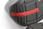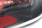 Prada Americas Cup Men's Sneaker Black And Red US 7 EU 40 Good condition Needs cleaning Creases on certain areas of sneakers Scratches and peeling on bottom sides of sneakers Insoles and bottom of sneakers have signs of use Please see pictures for more details